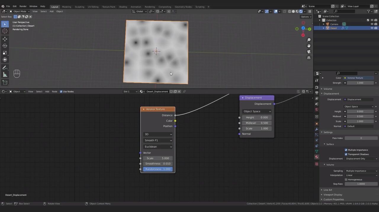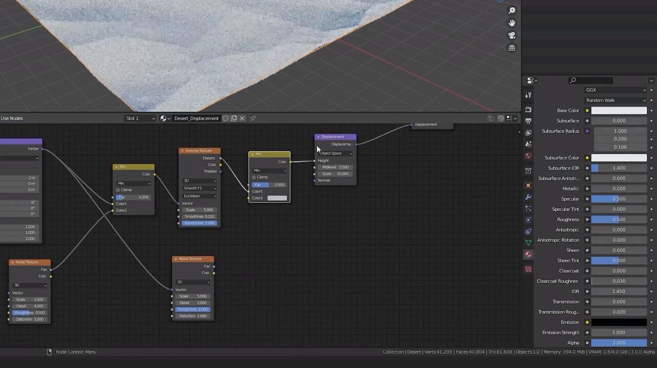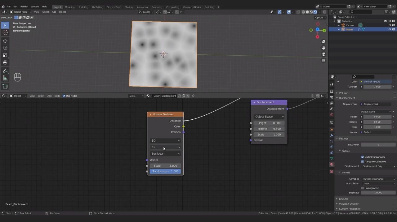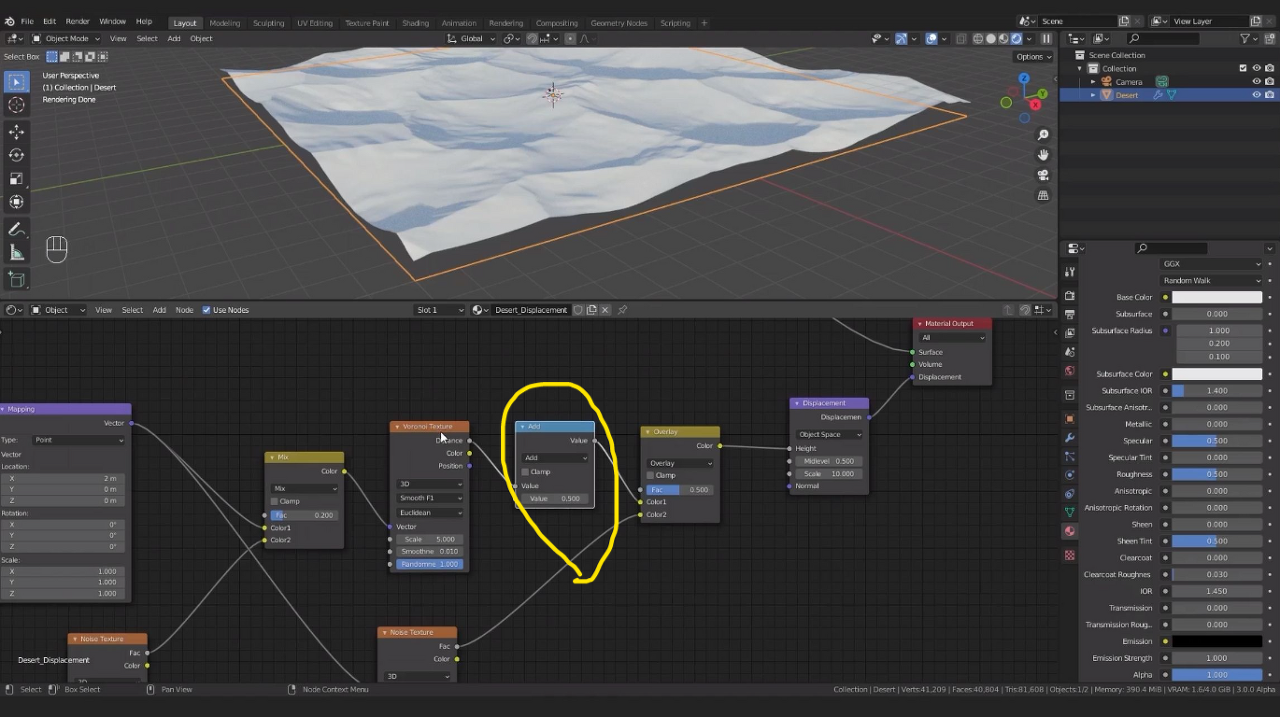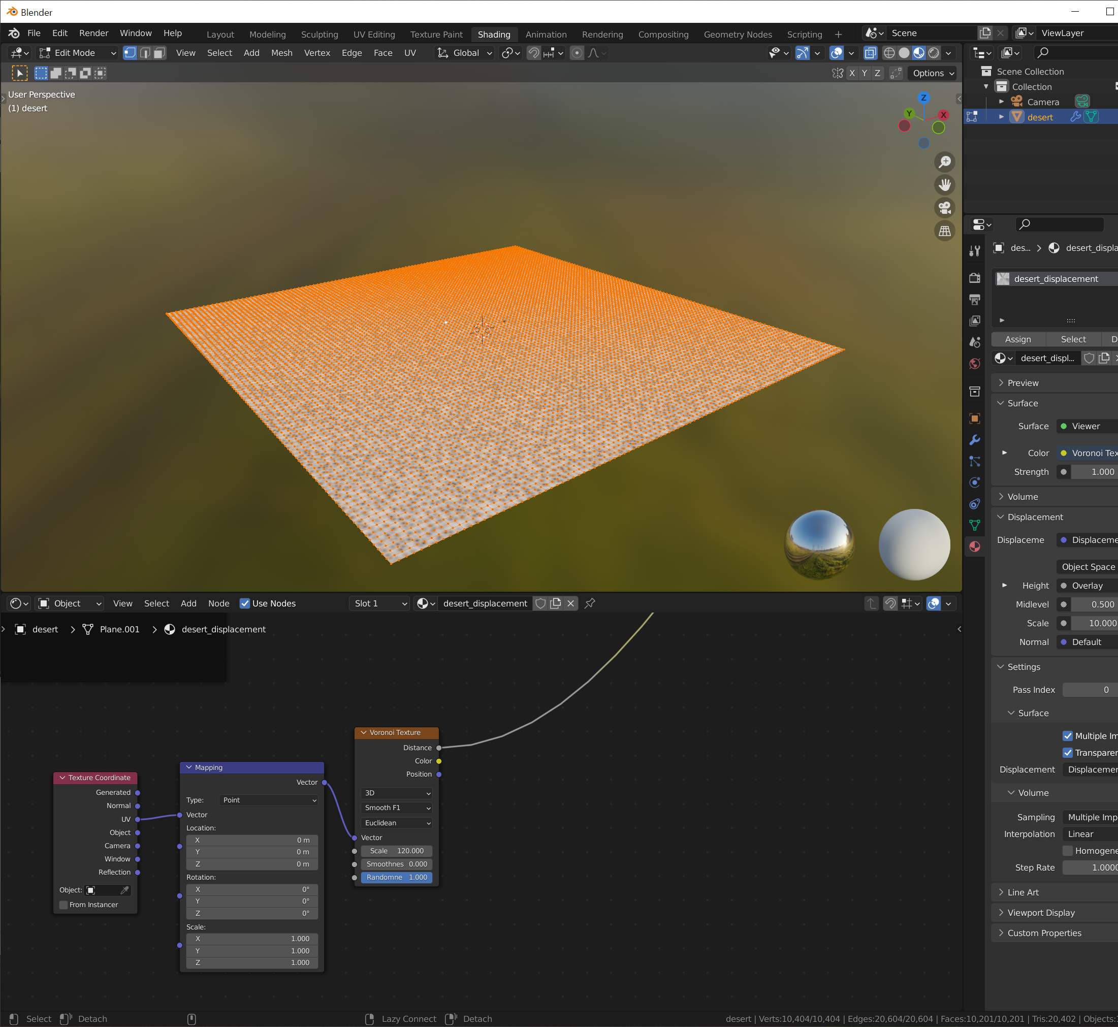 새 매티리얼 만들고 desert_displacement로 이름붙여줌
