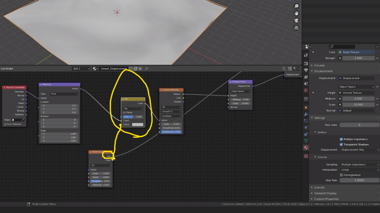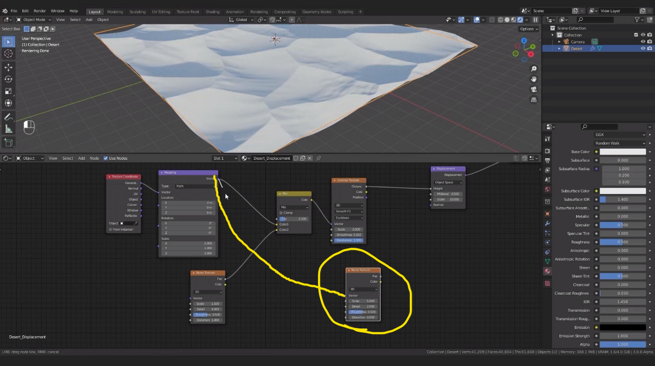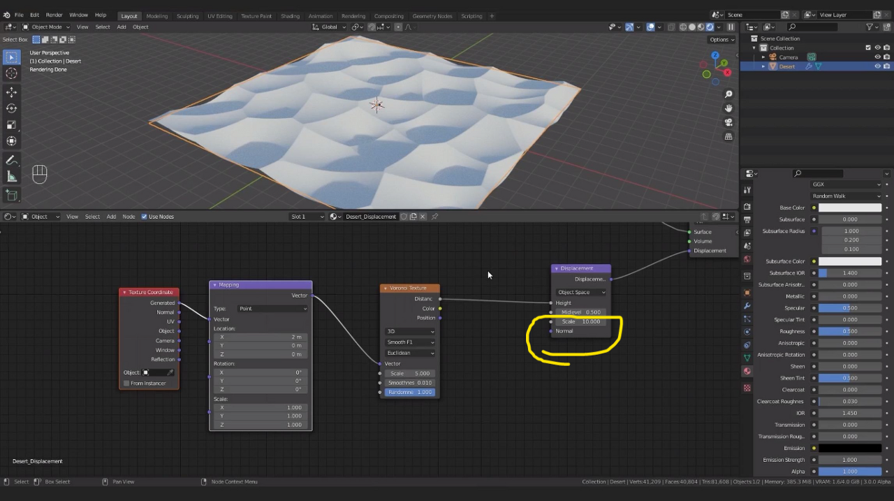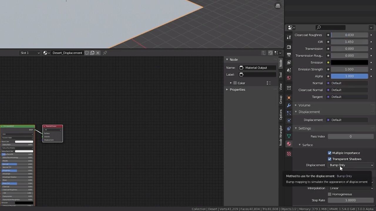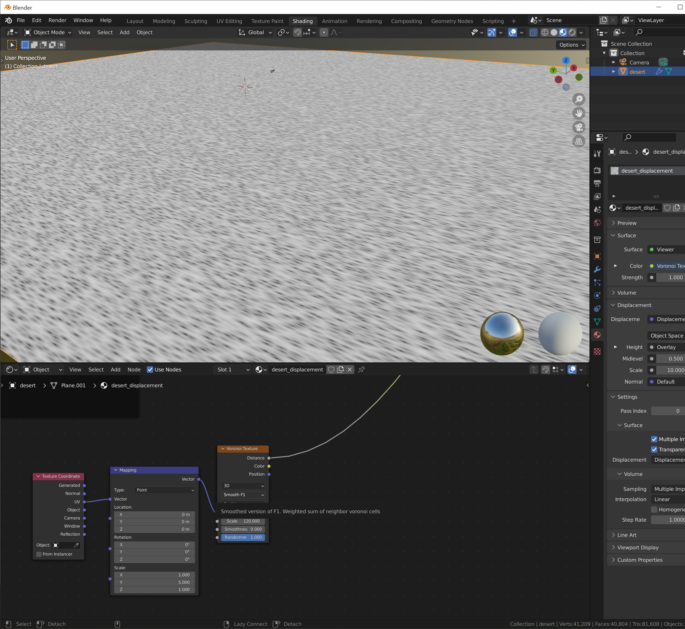 새 매티리얼 만들고 desert_displacement로 이름붙여줌