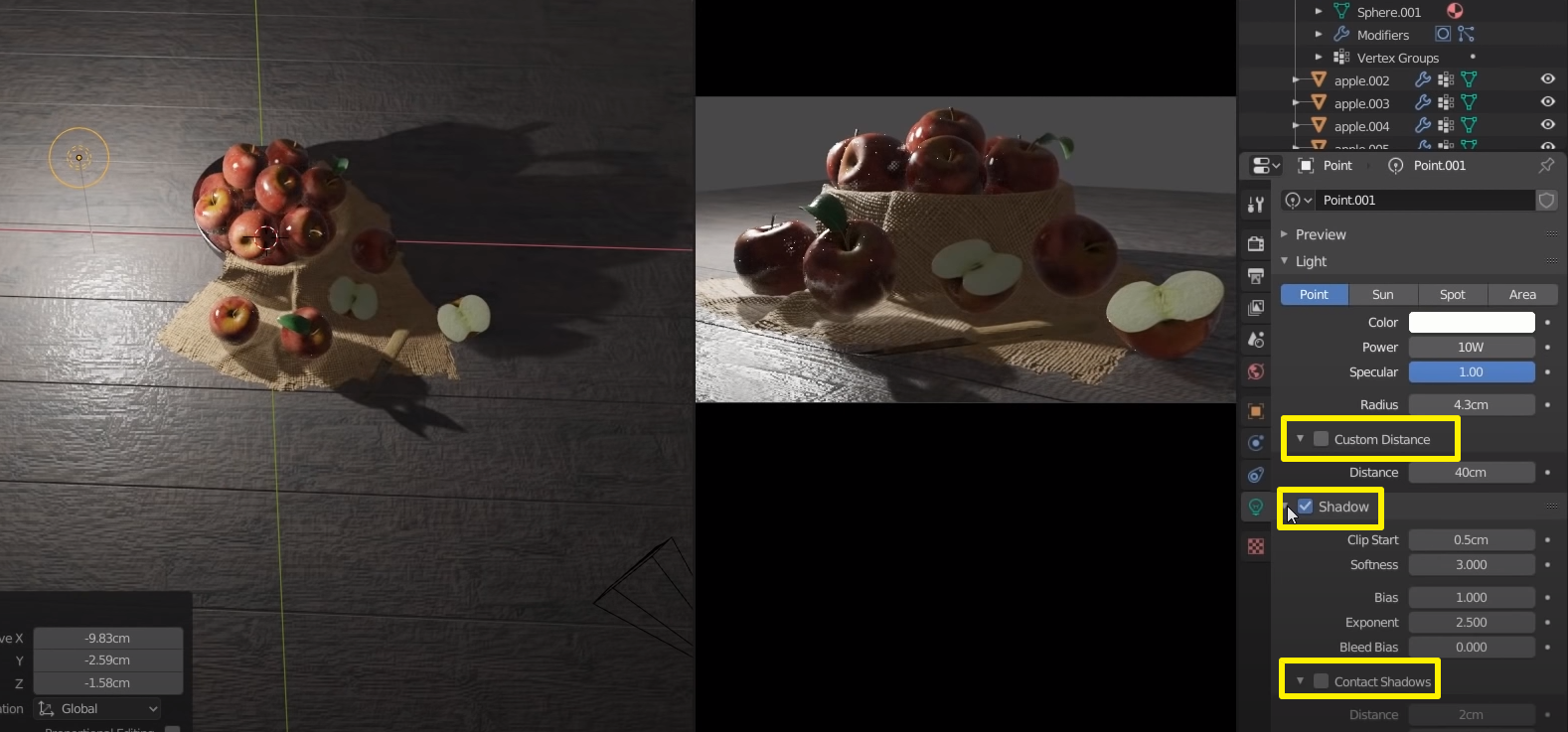 Custom Distance: 조명과 물체 사이의 거리 설정