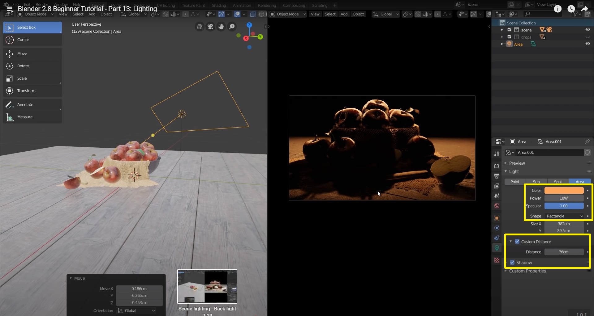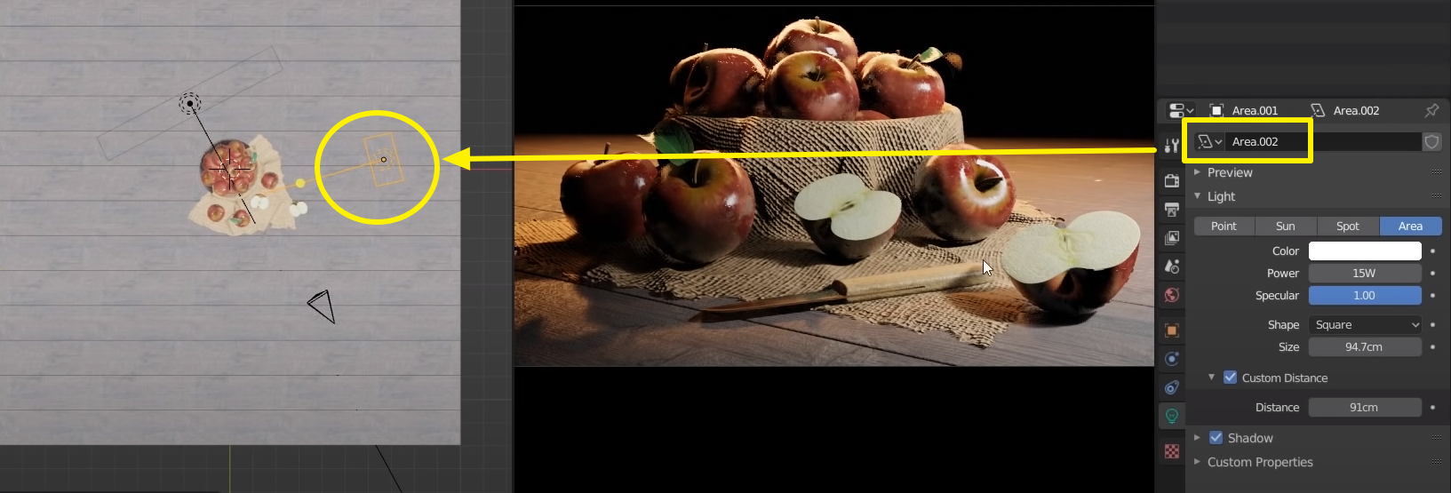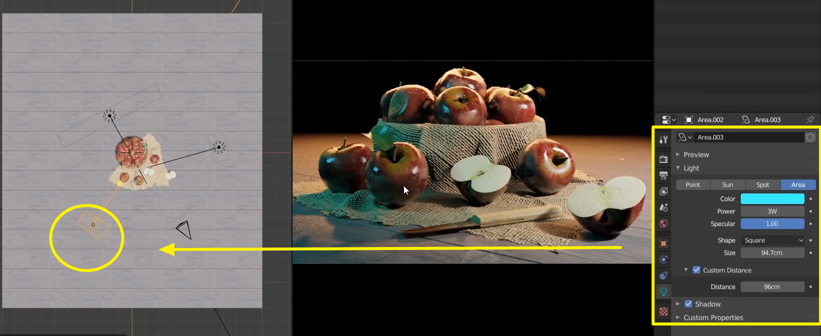 이제 사과 오브젝트를 빛나게 해줄 조명을 세팅