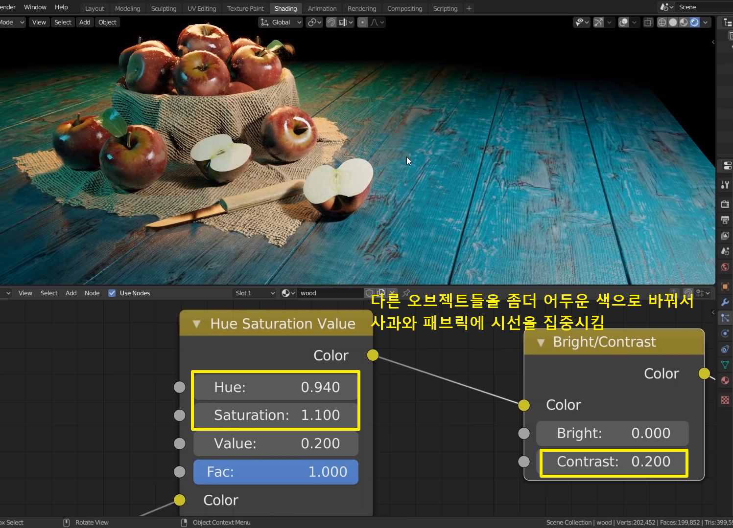그래야 사과의 윤곽선이 더 돋보인다고함