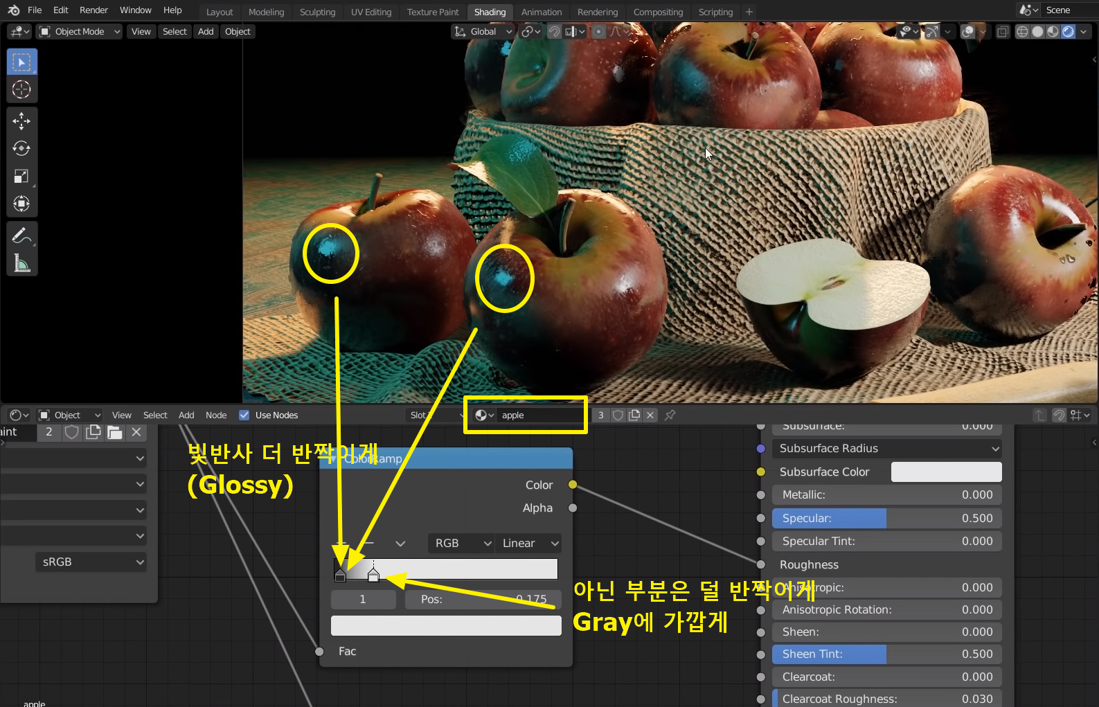 사과 오브젝트 Shading 속성 변경