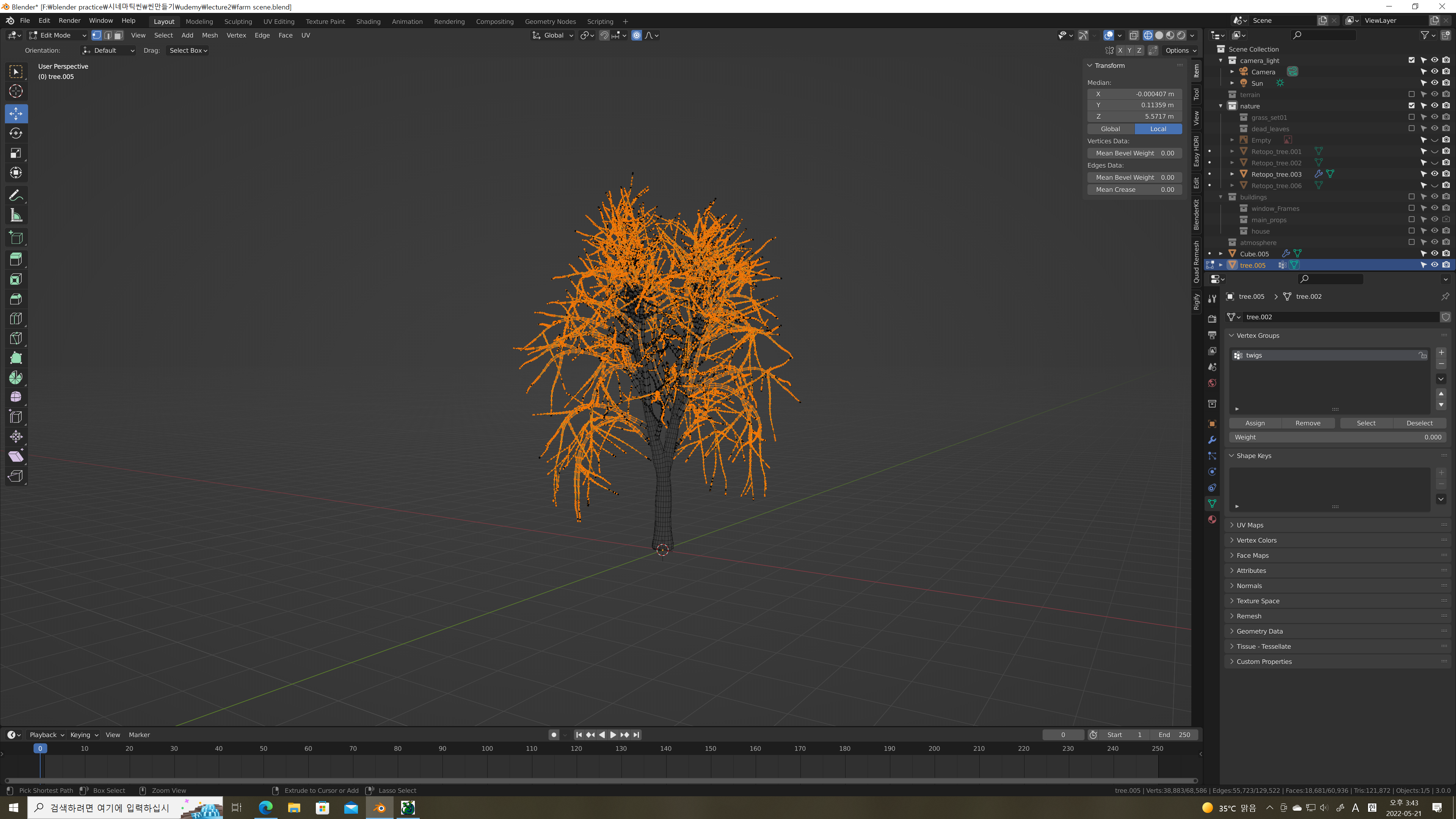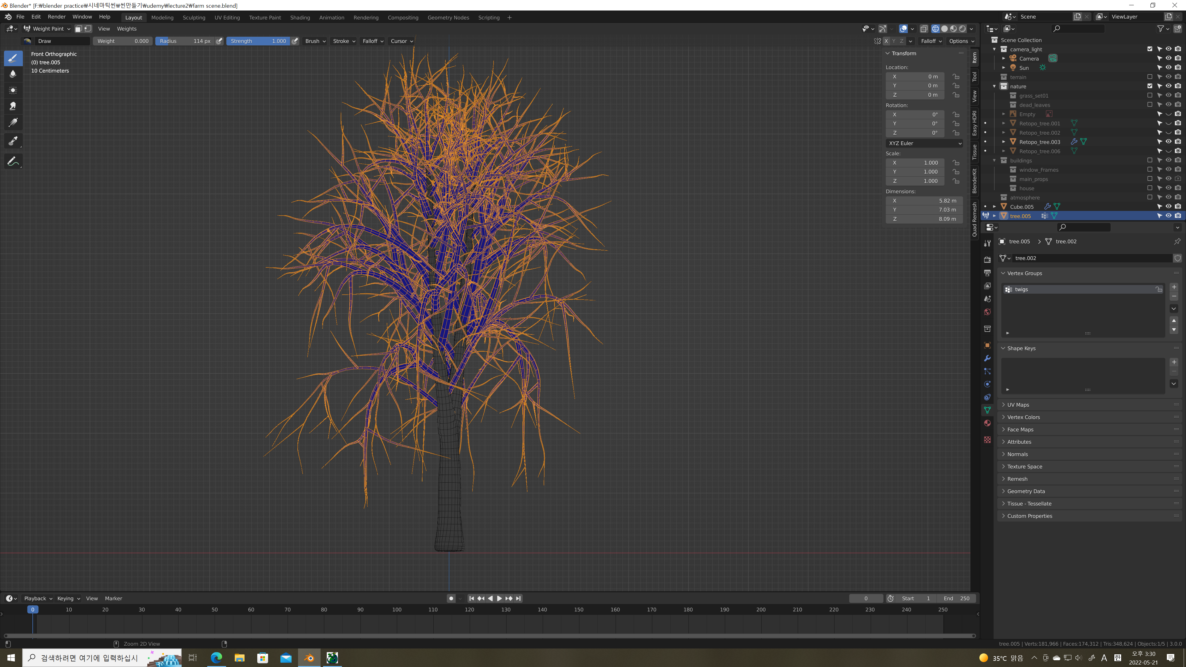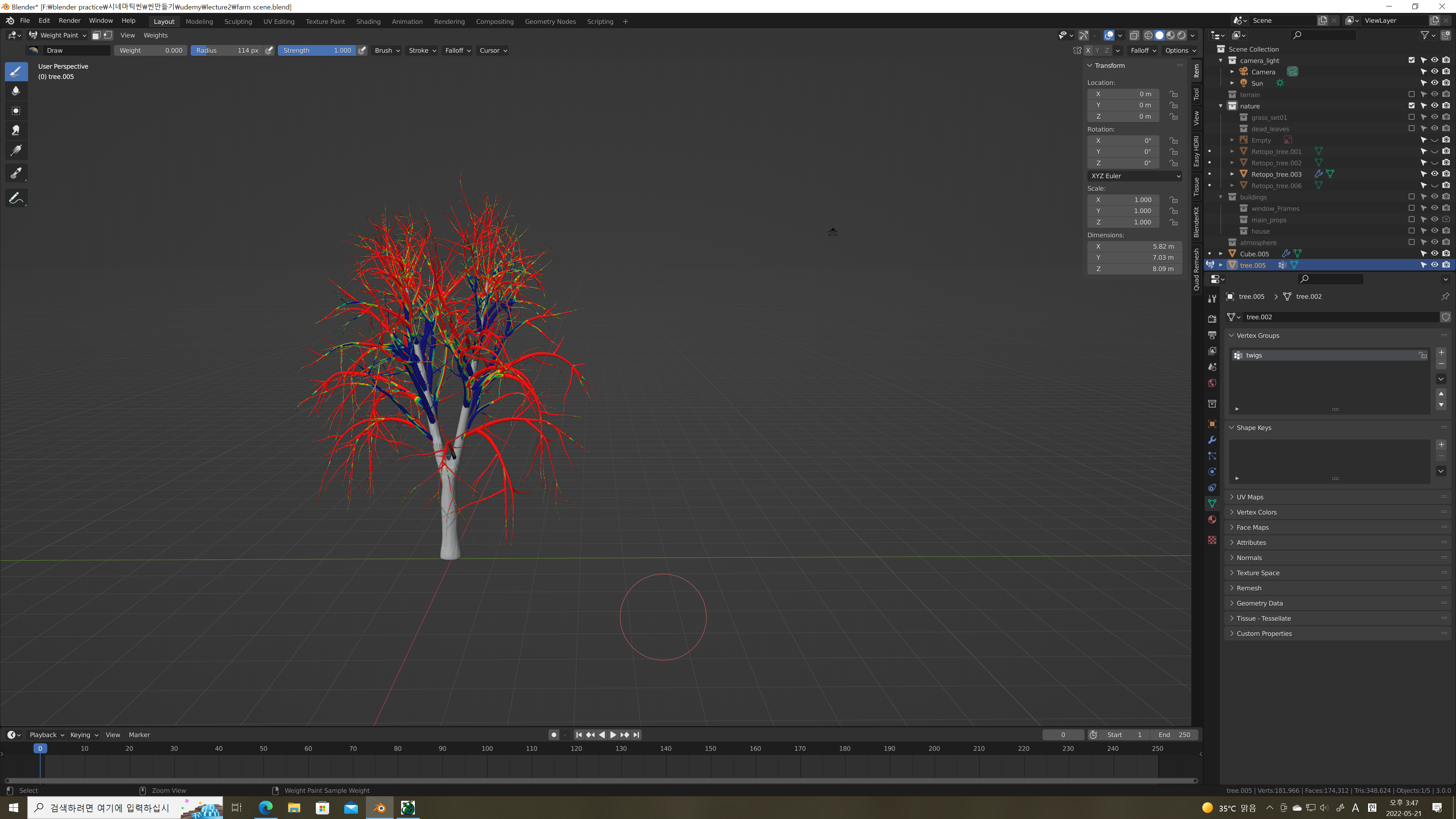 이때 이 버텍스그룹은 나무 밑둥말고 위에 나뭇잎이 달리는 부분만..