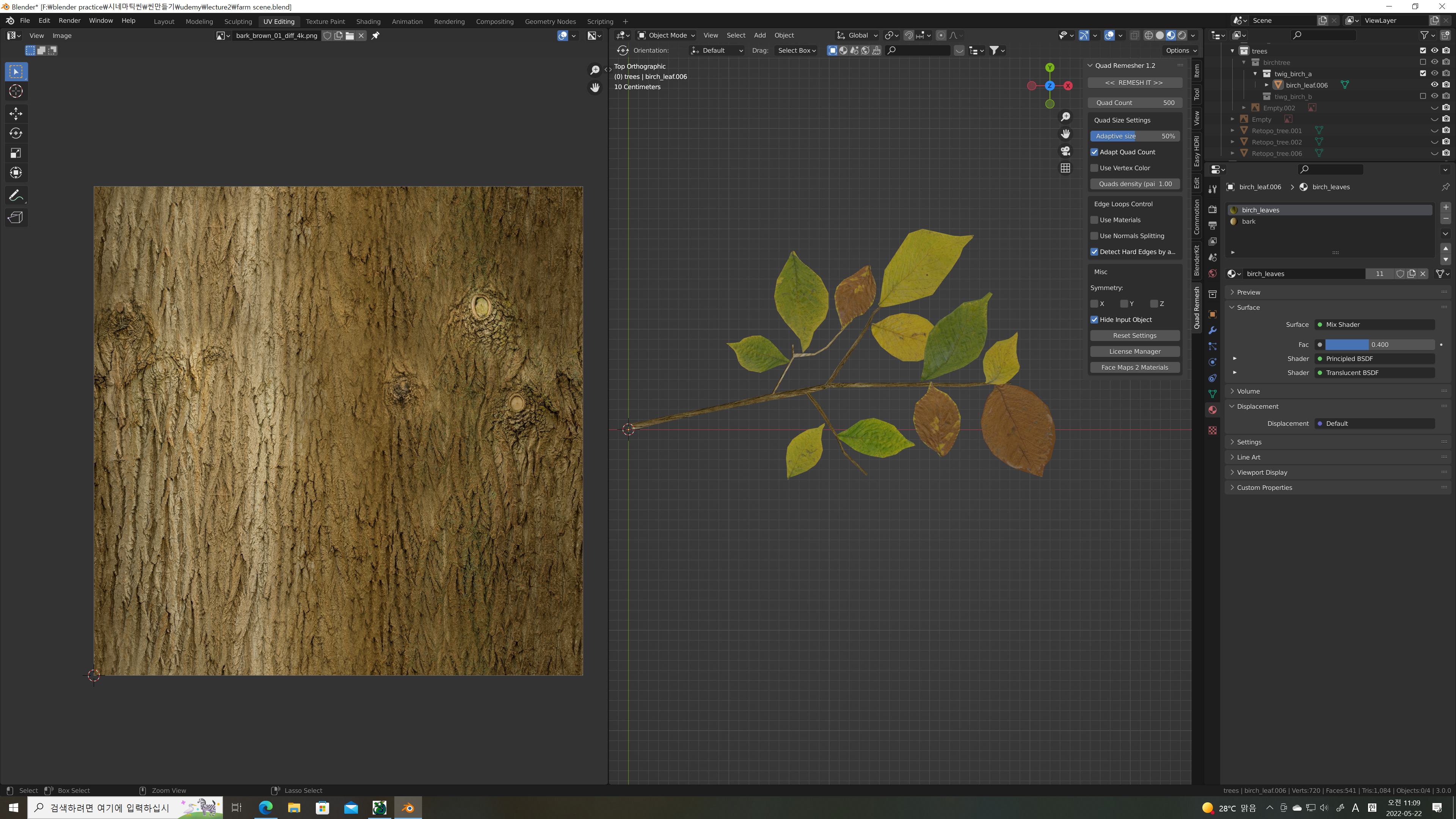 왜 (0) 2022.05.24 [blender] sapling tree gen으로 나무 만들어서 텍스쳐입히고 나뭇잎붙이기 (0) 2022.05.23 지형에 잔디 까는법 준비하기 (0) 2022.05.20 시네마틱 씬 (0) 2022.05.17 잔디 색깔 다양하게 .. 노드 (0) 2022.05.16