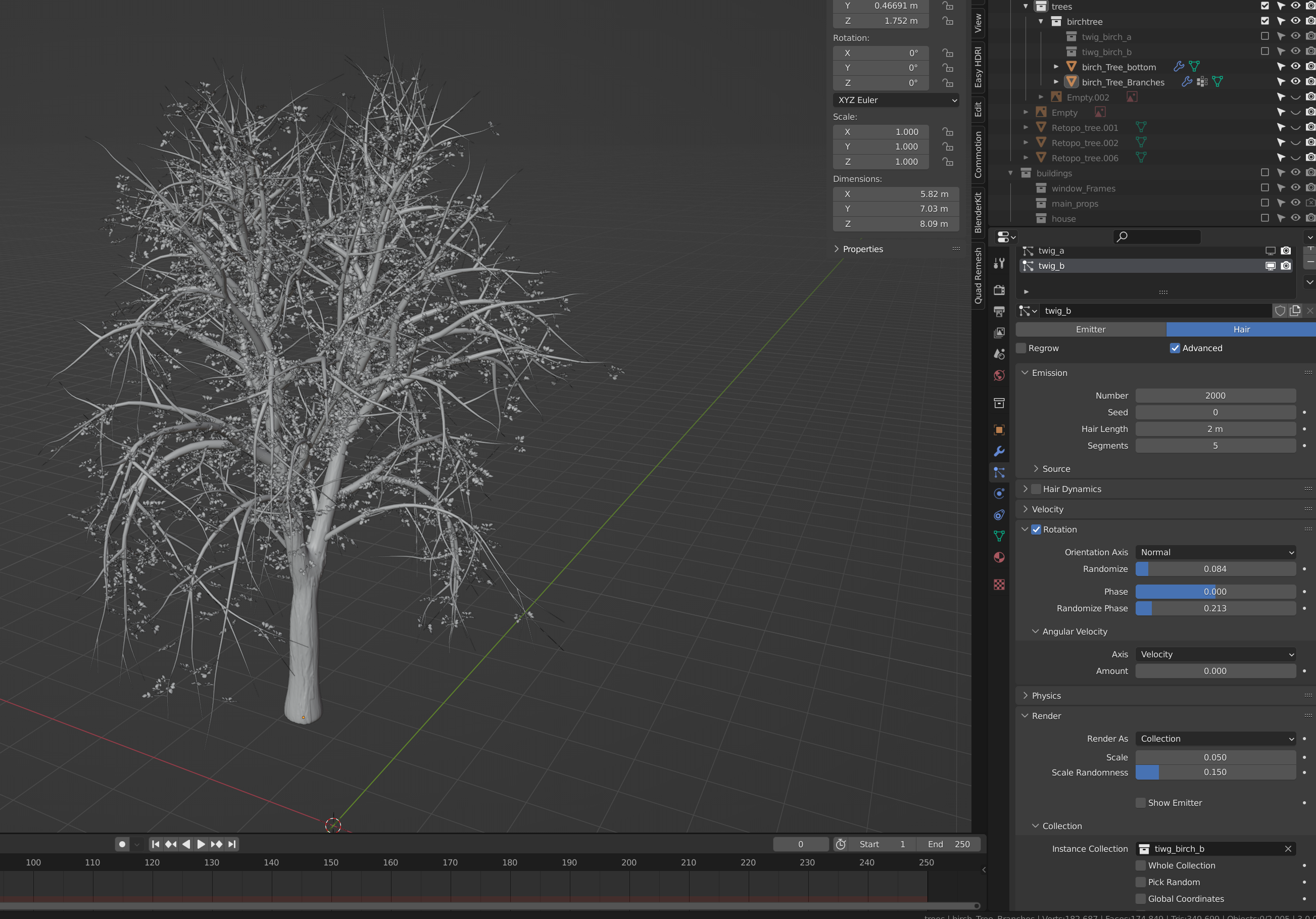 파티클 시스템을 사용하여 나무를 만드는 방법도 있지만