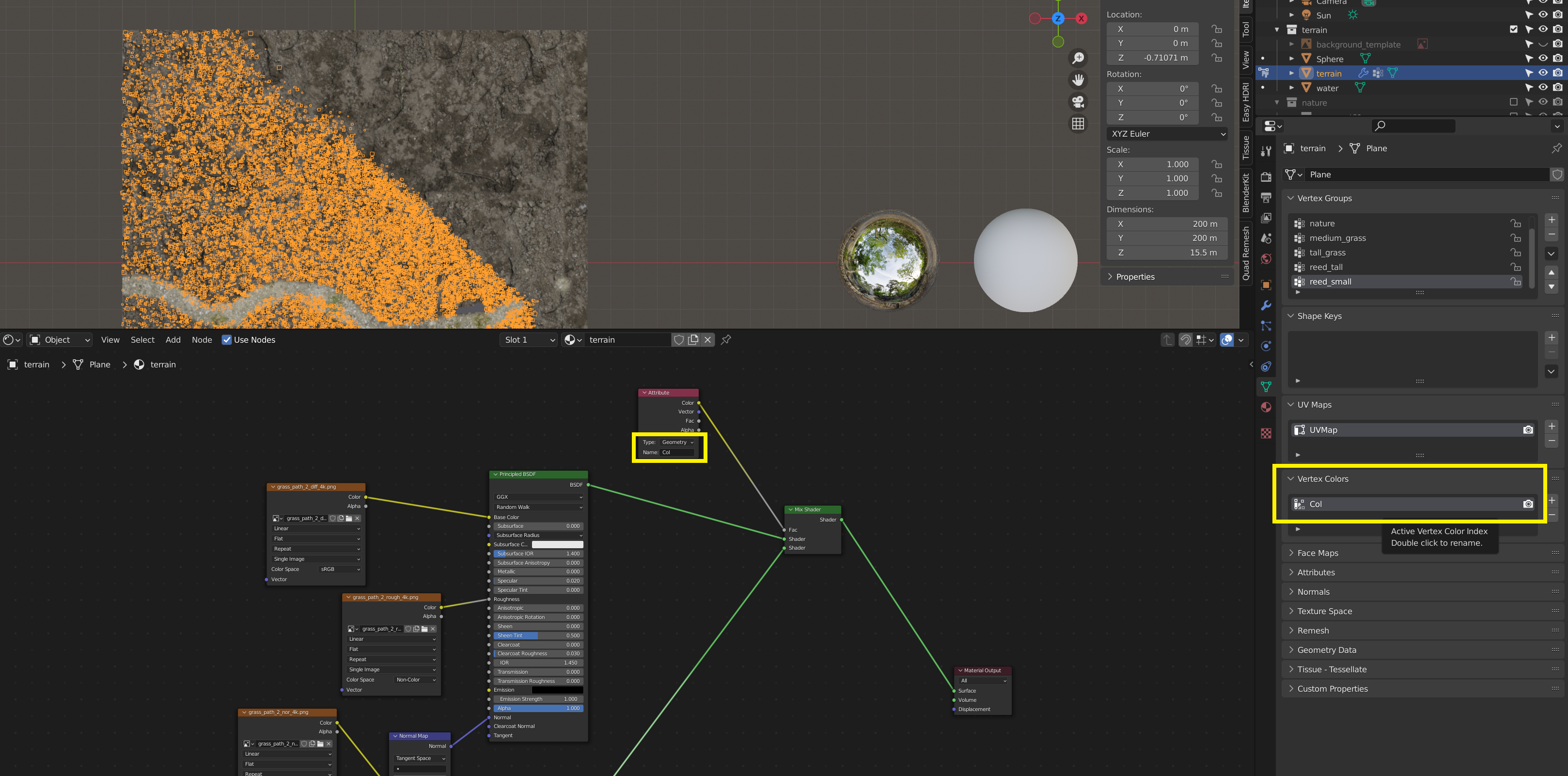 이때 vertex colors에 +눌러서 col 만들어져있어야함