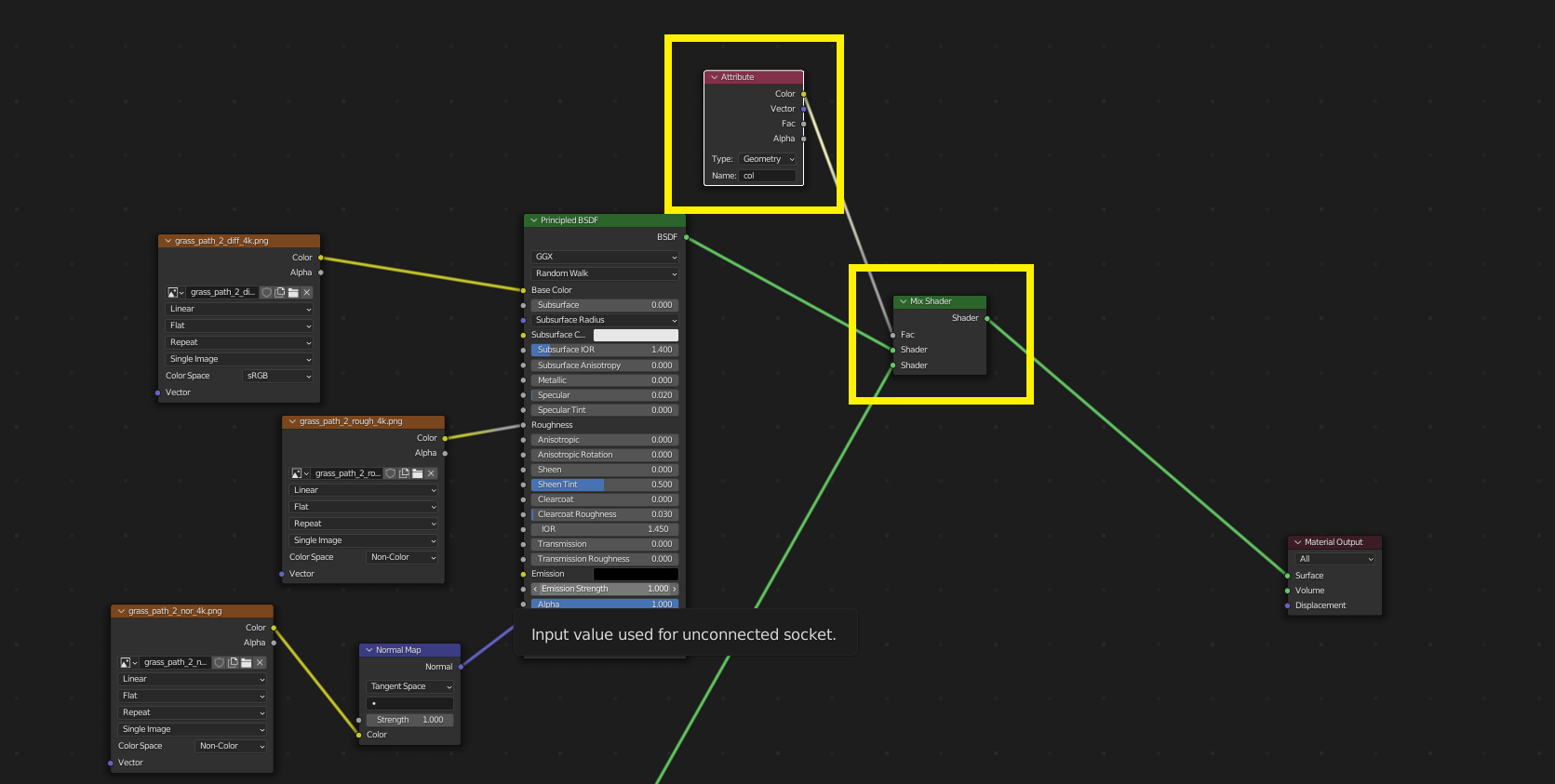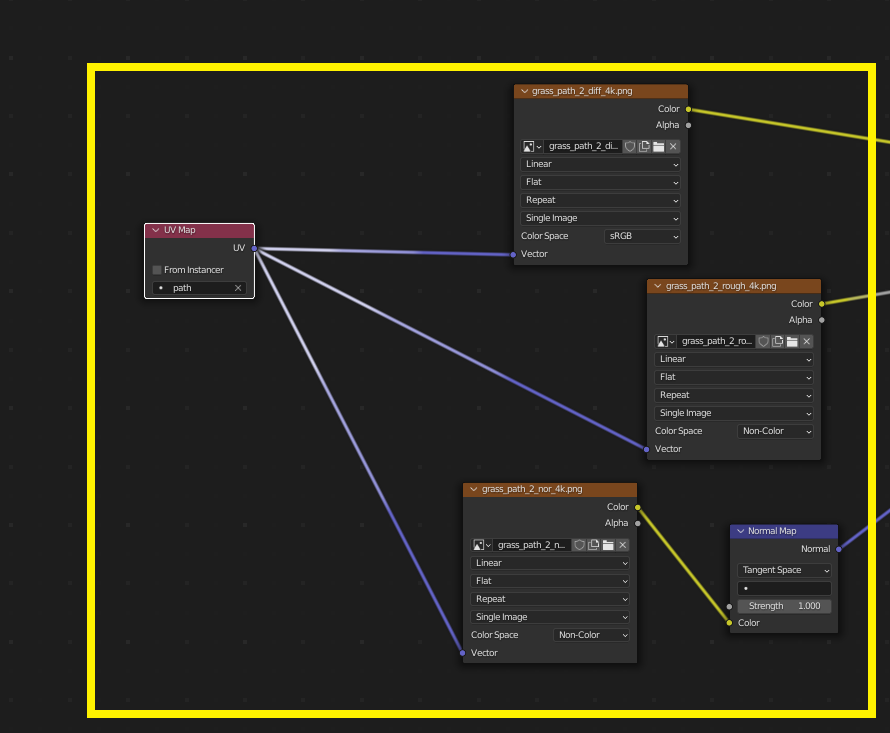 그리고 path 이미지, path의 러프니스, 노말맵을 연결~