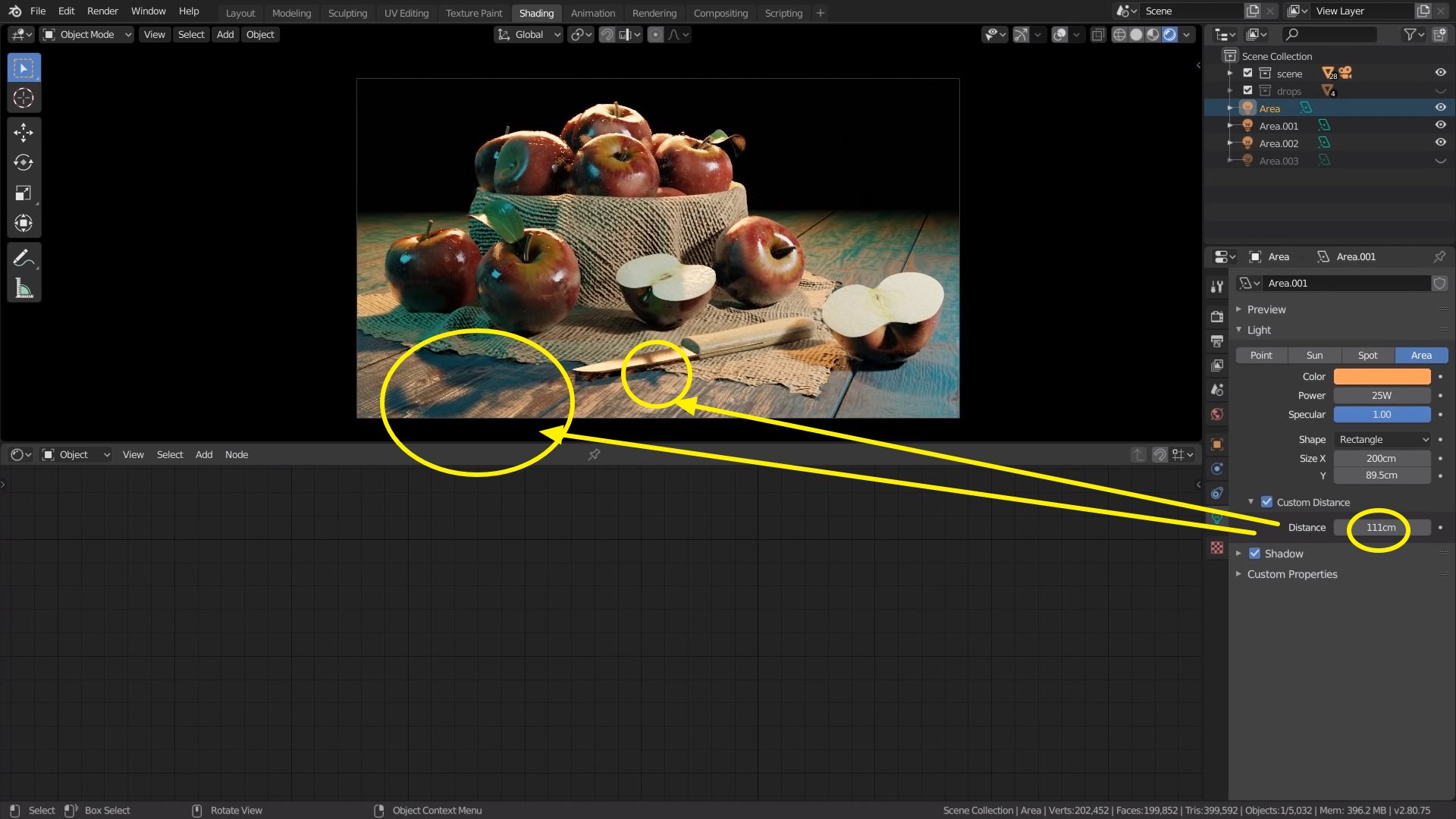 조명의 Custom Distance 좀더 멀리둬서