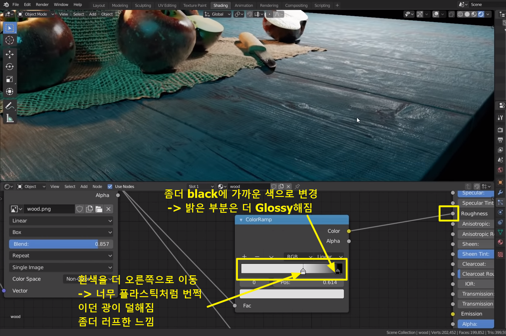이번에는 저 Wood(테이블) 오브젝트의 색상을 좀더 어둡게 바꿔줄거임
