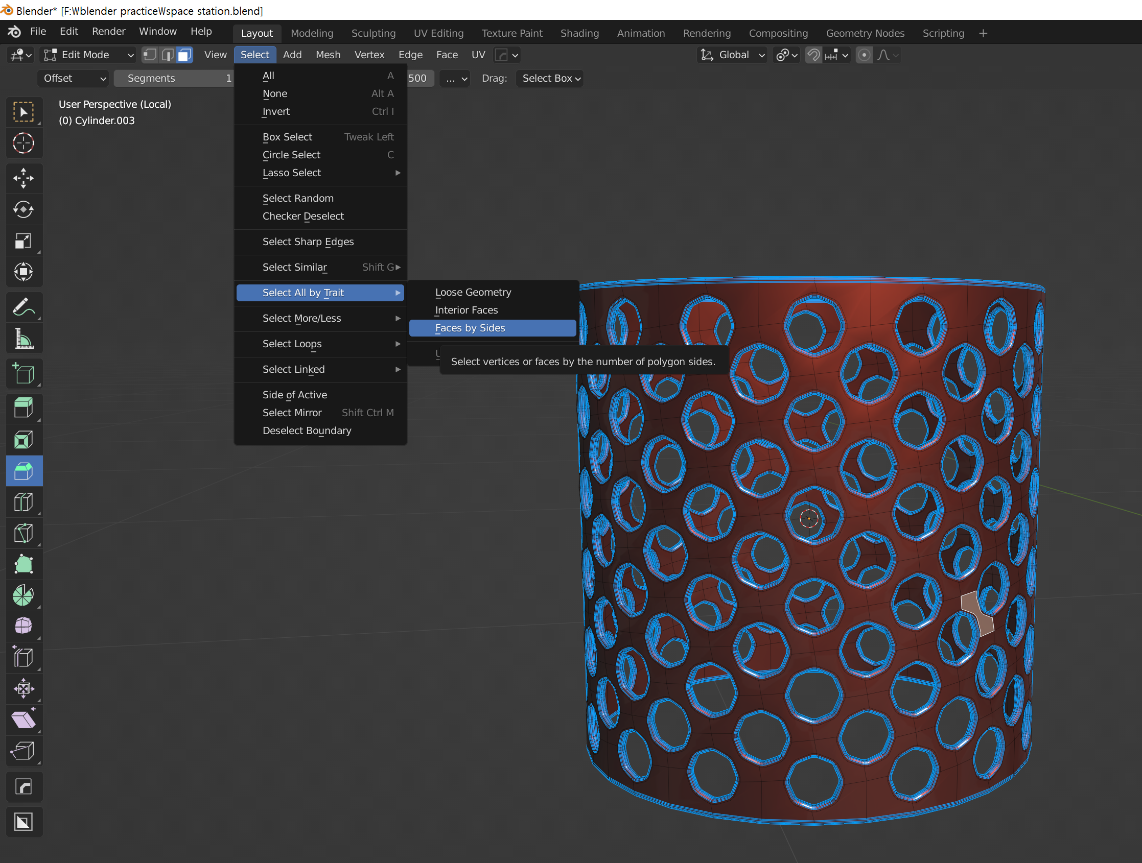 으로 바꿔주면 5각형 이상인 페이스들을 전부 선택하게 된다.