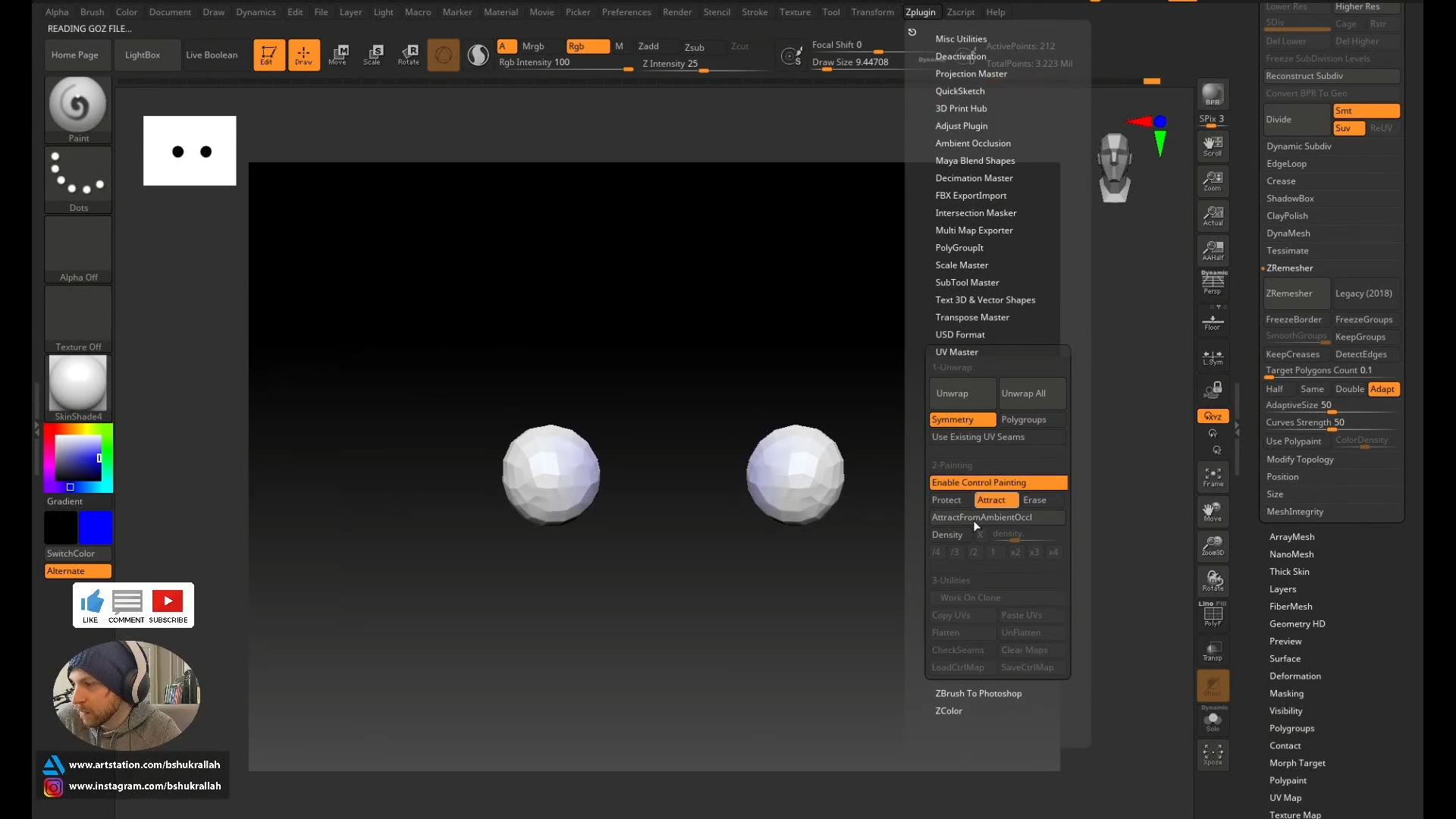PolyPaint를 켜주고 Color Density는 3으로 해줬음