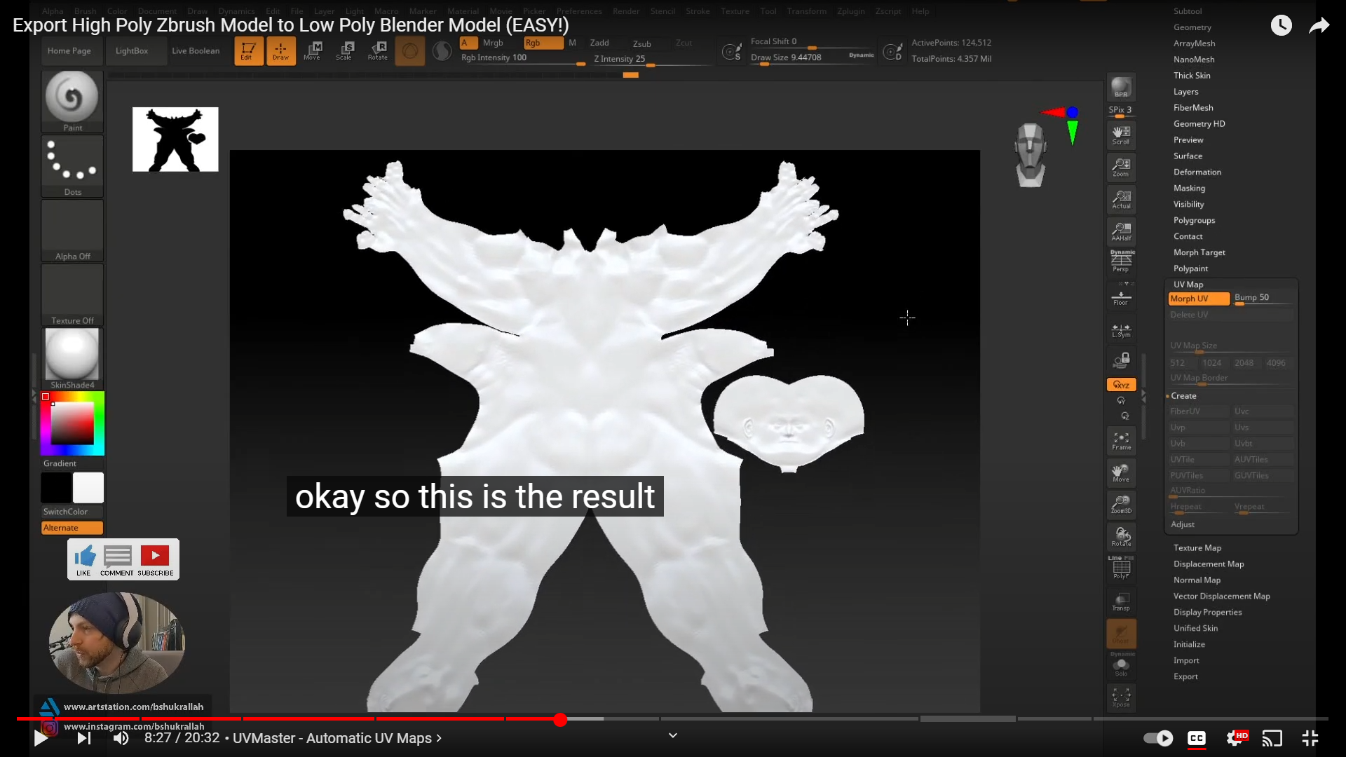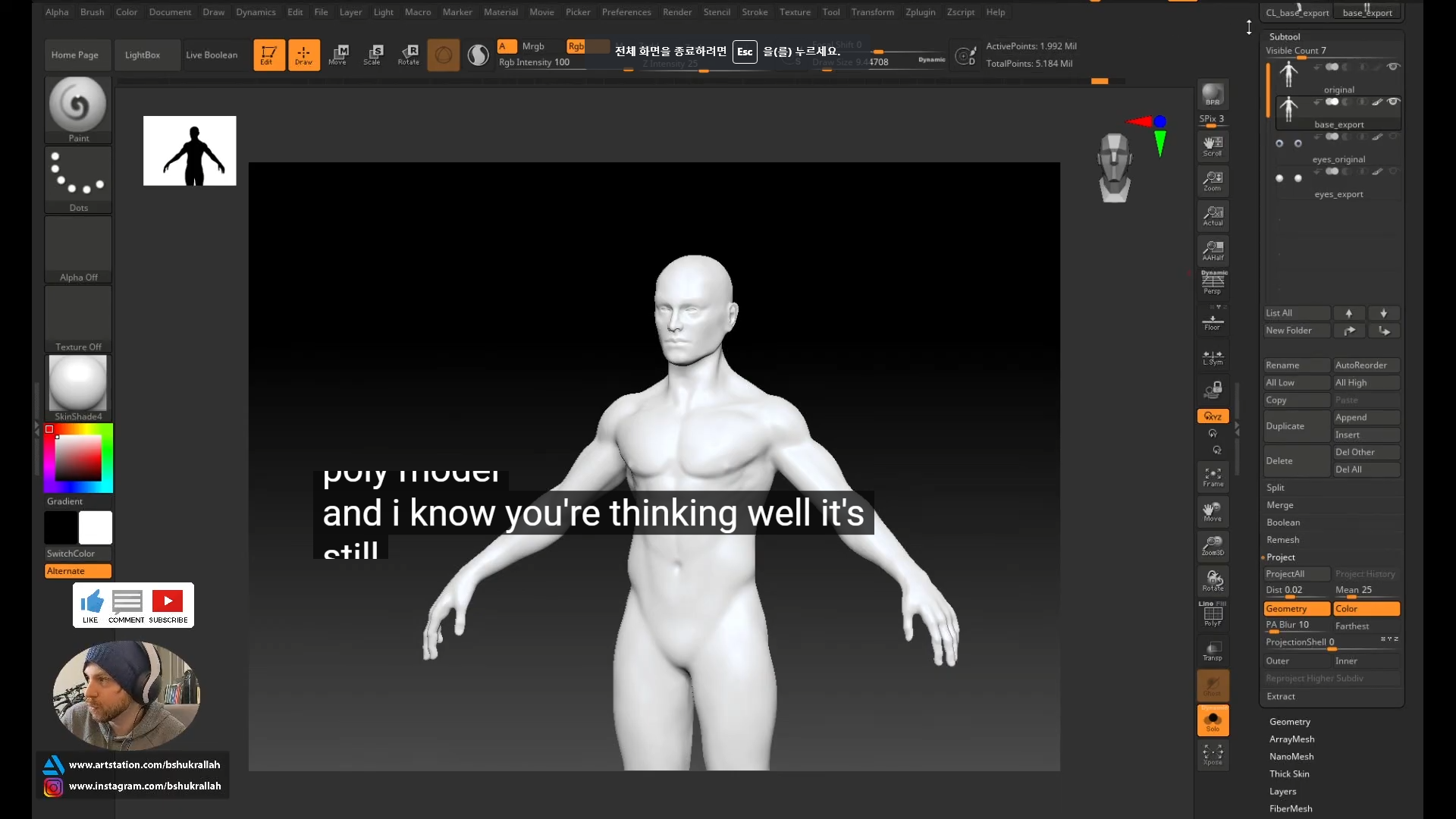 폴리곤 수가 1.992MIl정도로 늘어났지만 이정도는 돼야~ 하이폴리 모델 정보릀 ㅓ포트할수있다고함
