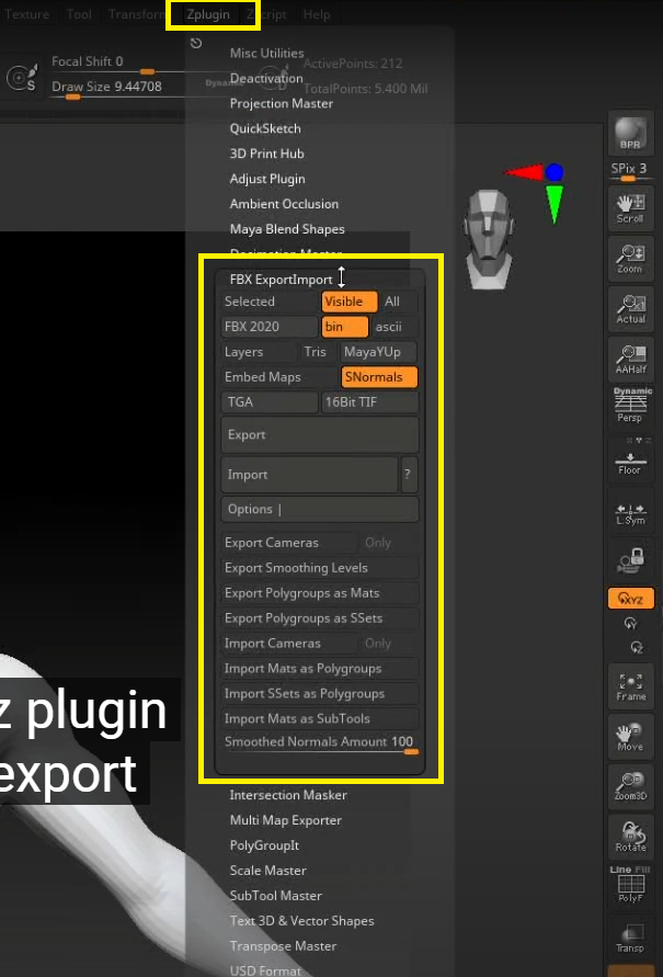 Zplugin 메뉴에서 Fbx ExportImport 클릭