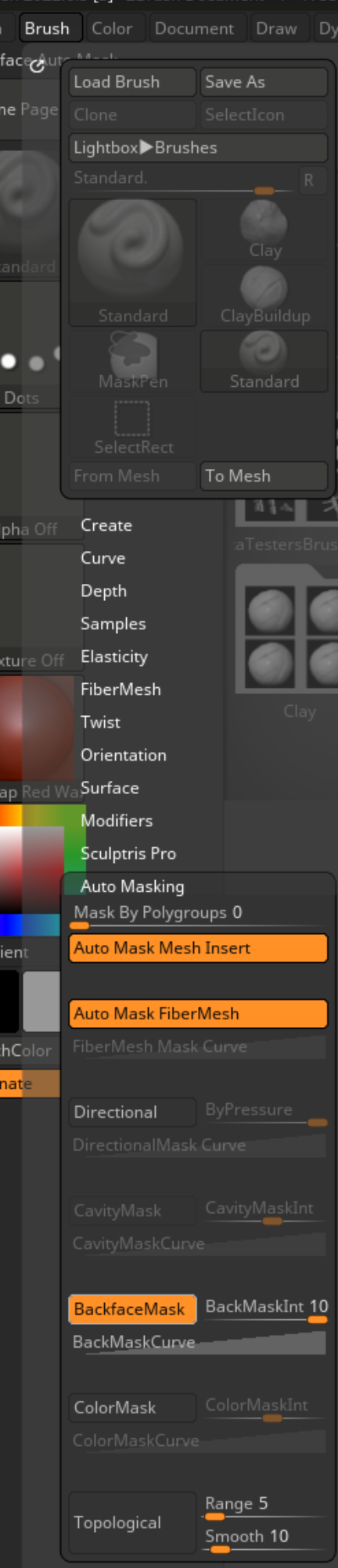 Brush-> Auto Masking-> backface Mask 눌러서 활성화