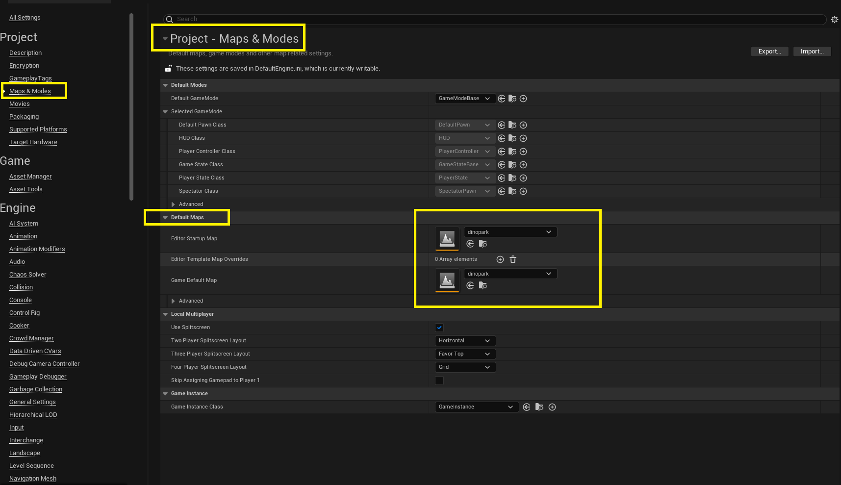 Project settings>Project Map & Models >Default Maps 에서 변경하면됨