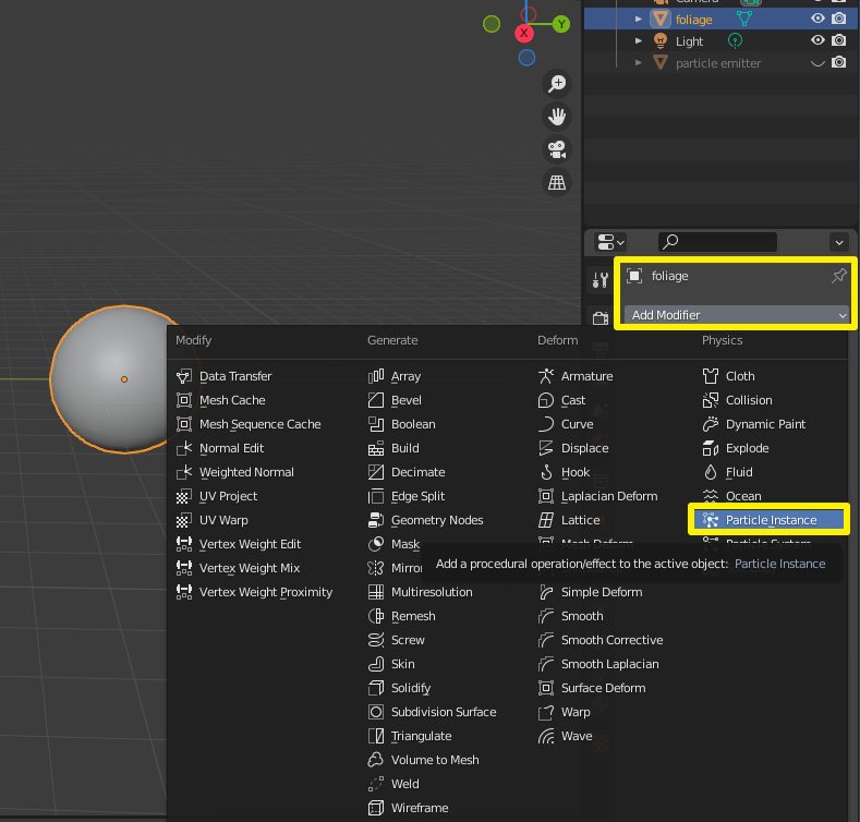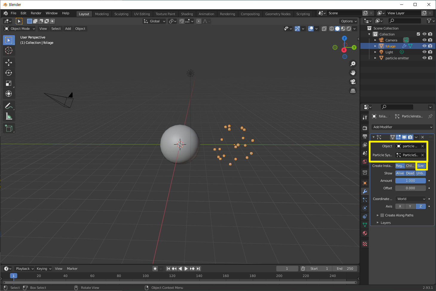이렇게 하는 이유: Modifier에서 Particle instance Modifier를 쓸 거기때문
