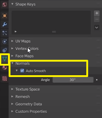 Object Data properties 가서 Normals-> Auto Smooth 켜줌