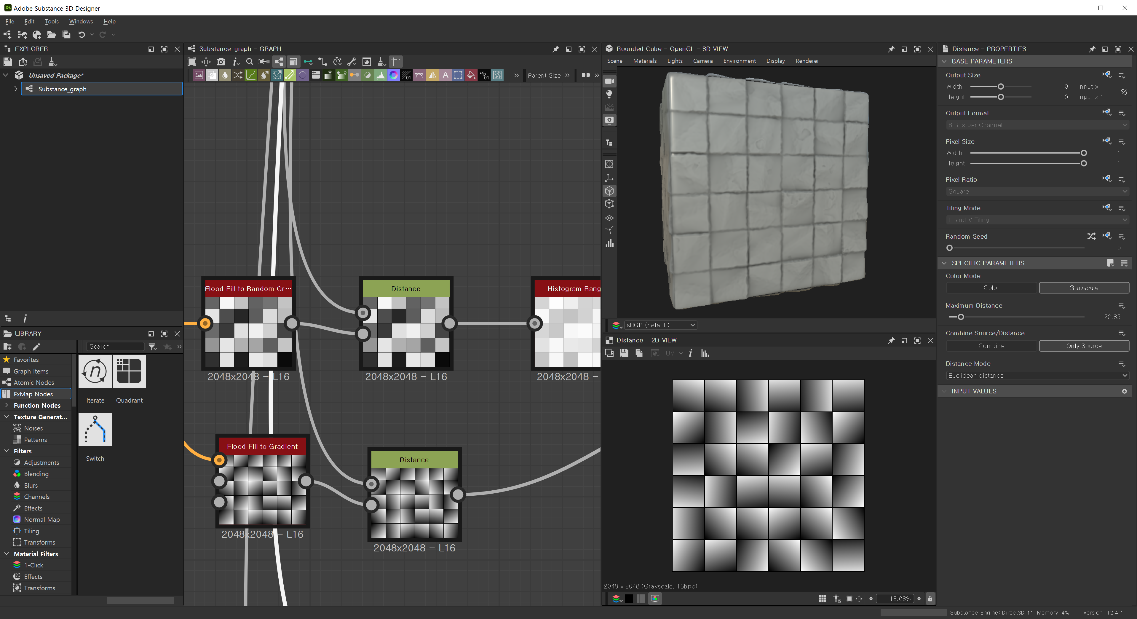 이때 distance에는 edge detect가 mask input으로 , source input에는 flood fill to.. 노드가 들어감