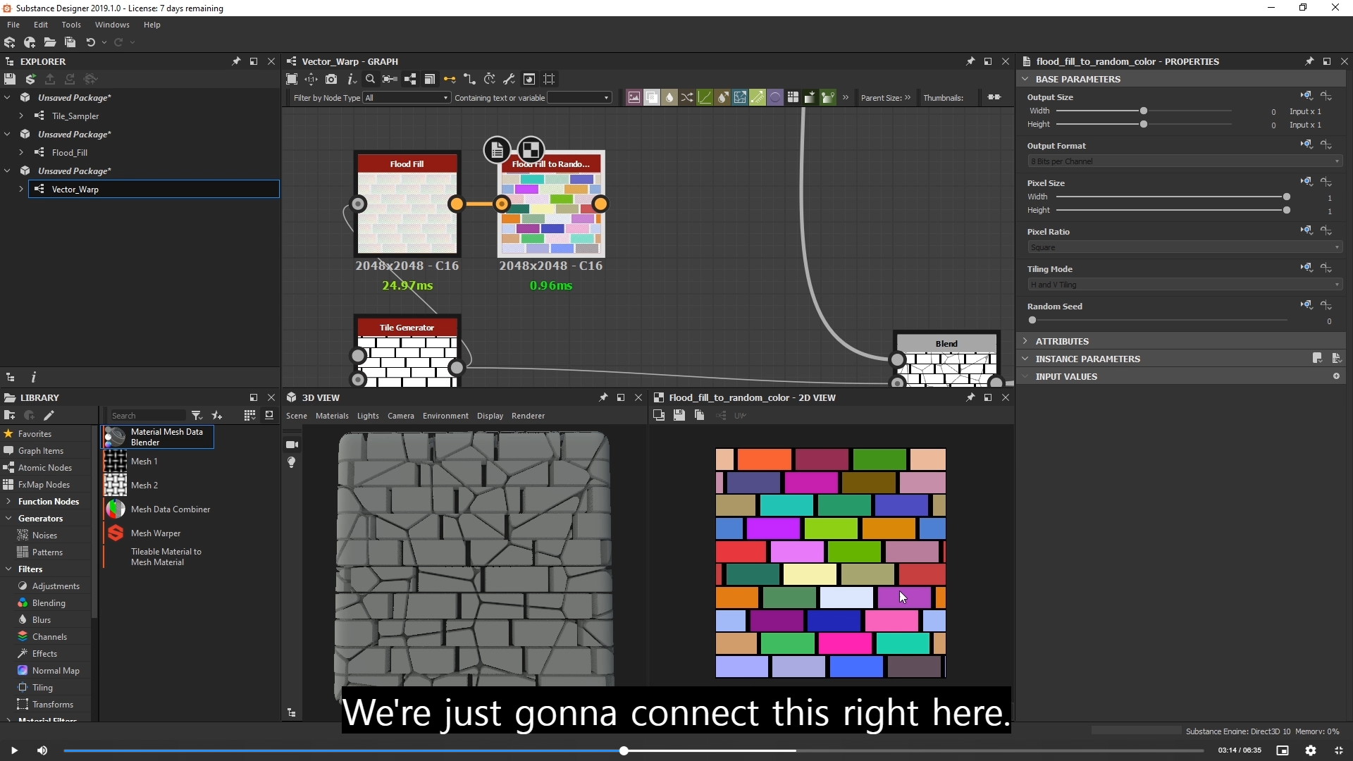 vector warp map 힘차게 사용 vector warp 추가하고 앞에 있는 flood fill to random color 노드를 warp 재료로넣자