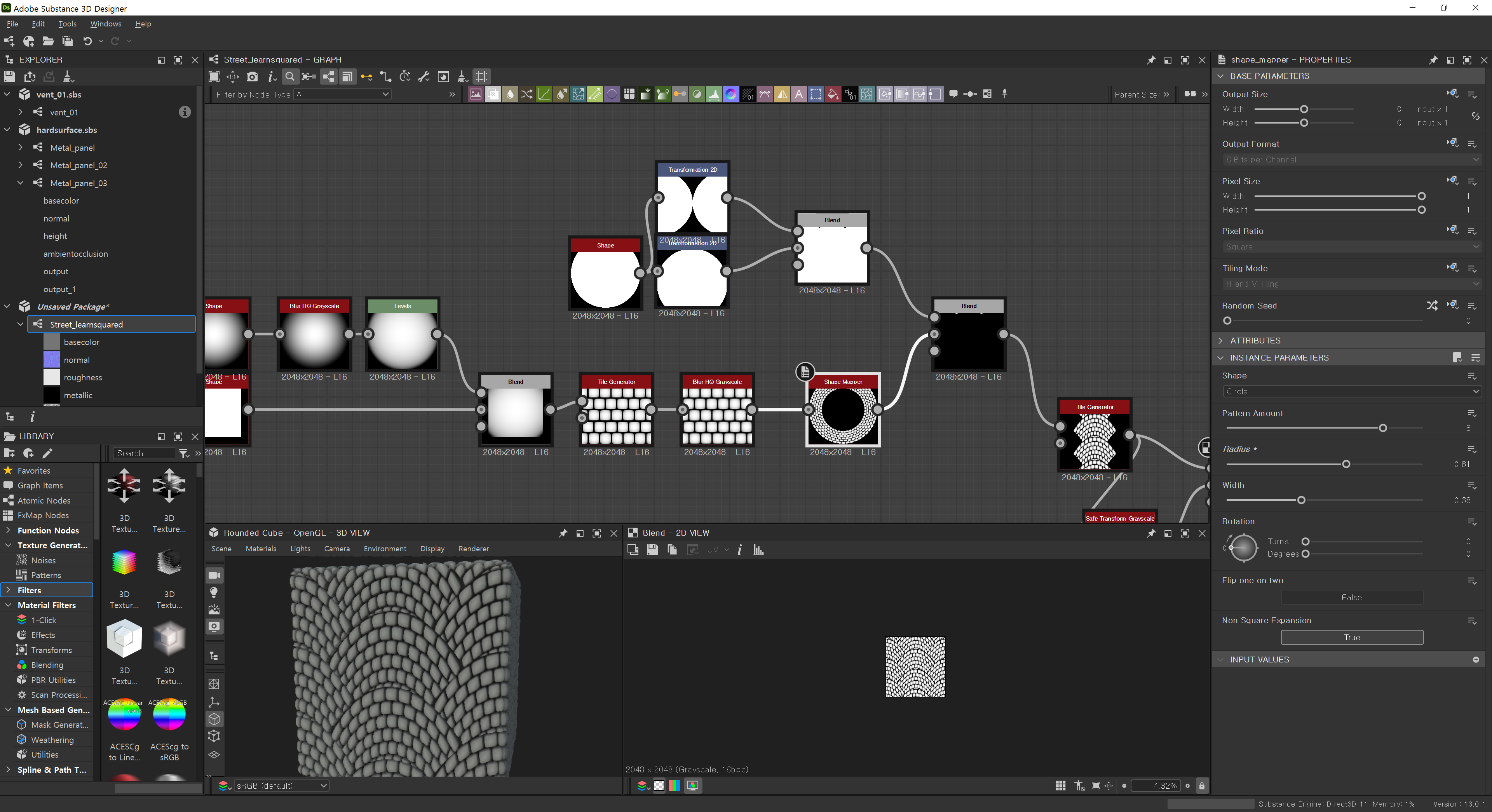 shape mapper 라는 노드를 사용해 동그랗게 혹은 폴리곤 모양으로 만든다음