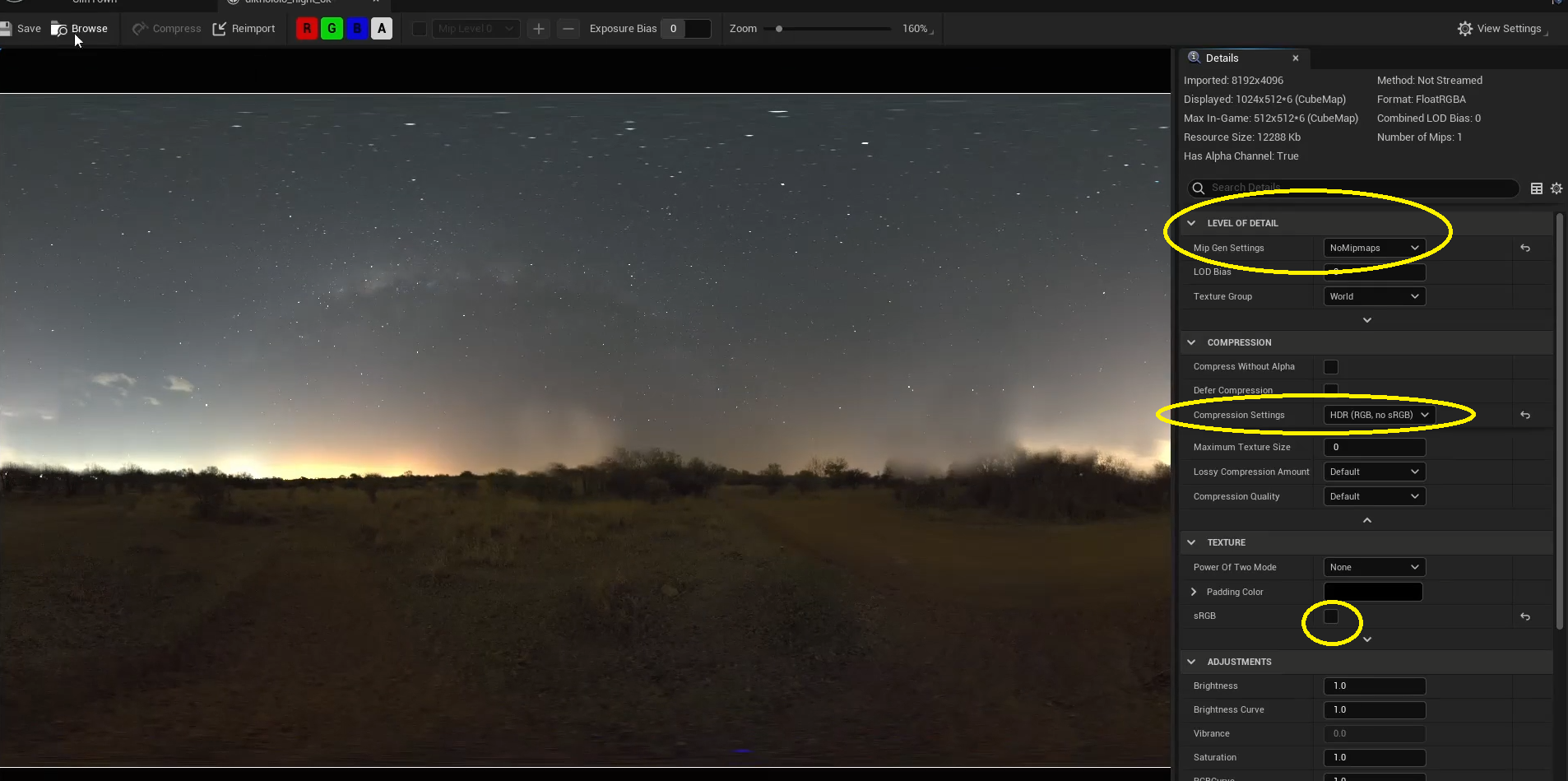 뭔지모르지만 이세팅으로 일단 밤 하늘 세팅을 준비