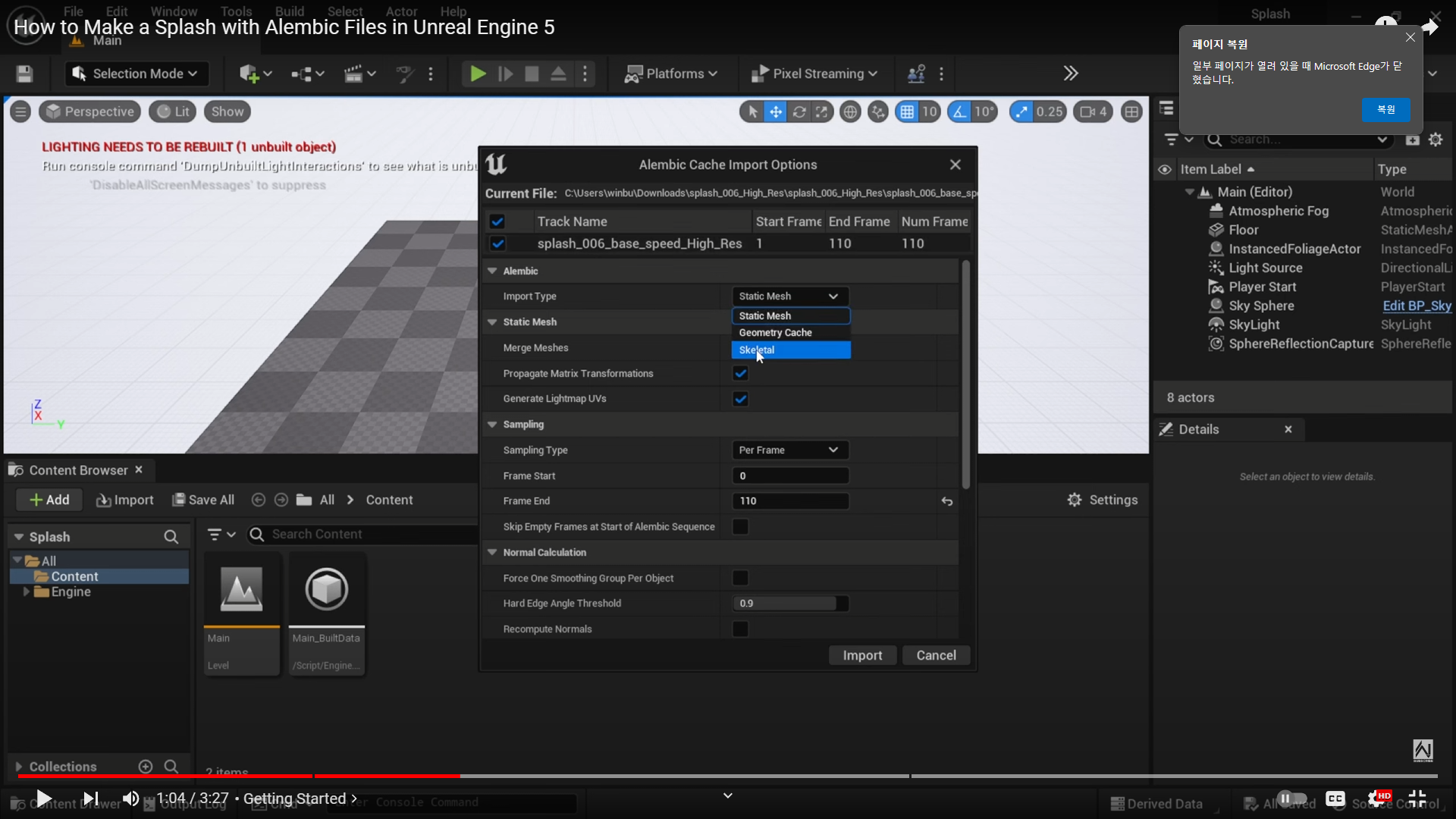 Static mesh 로 되어있는것을 Geometry Cache 로 바꿔주기!