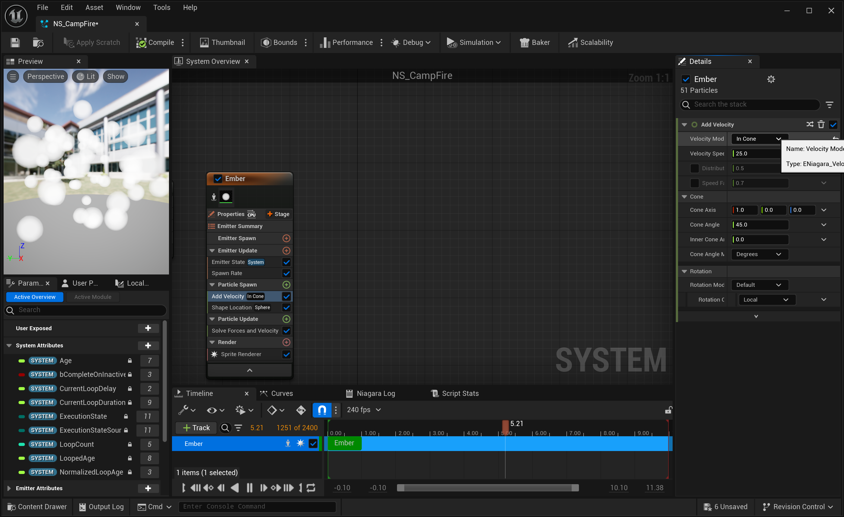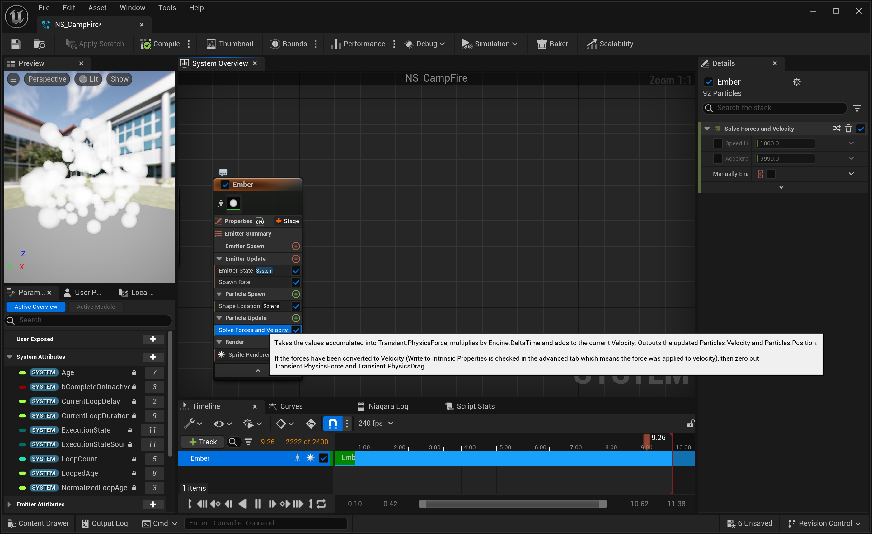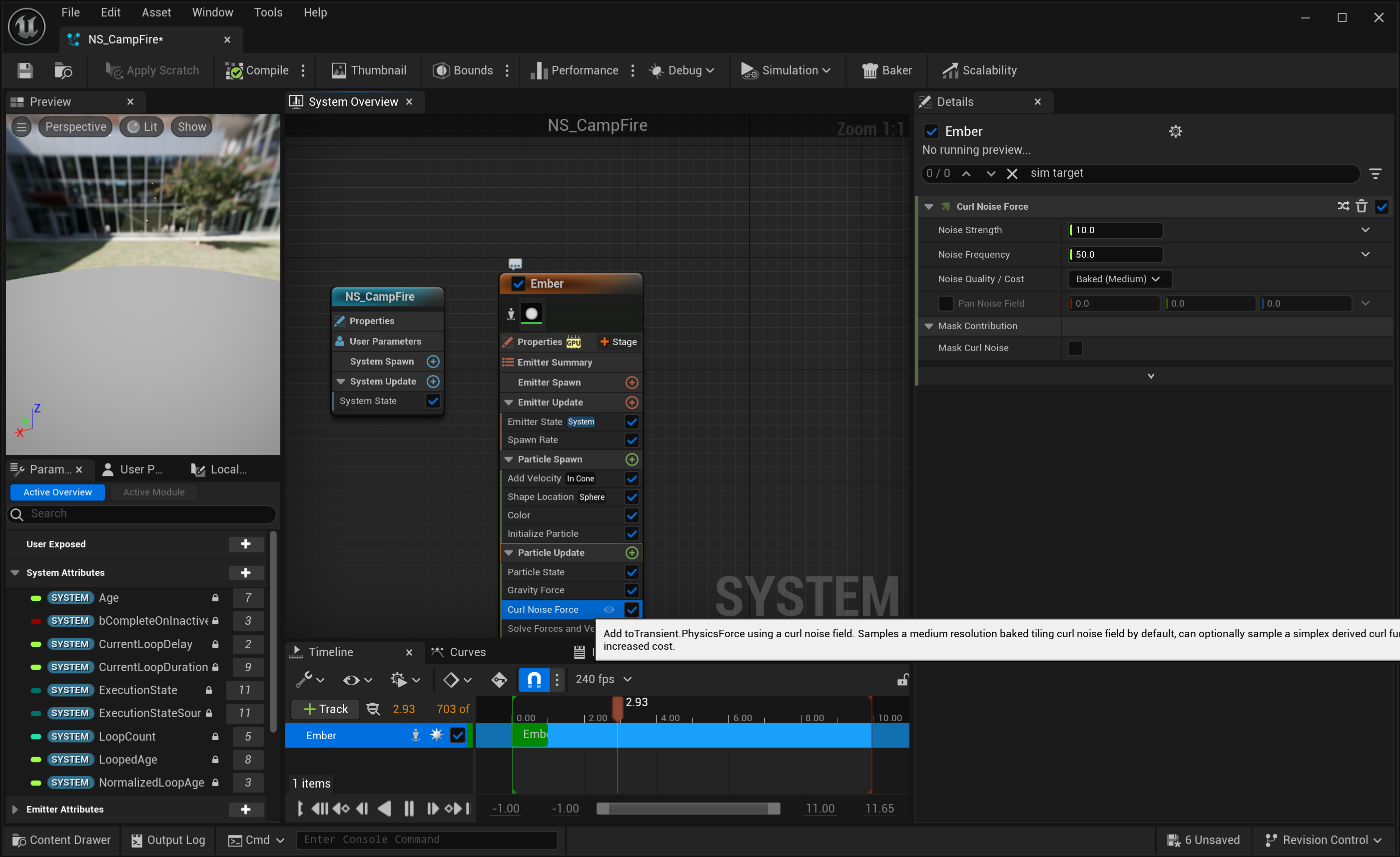 좀더 연기처럼 불꽃? 재?가 하늘위로 날아오르게하려면 Particle Update 아래에 Curl Noise Force 추가해주자