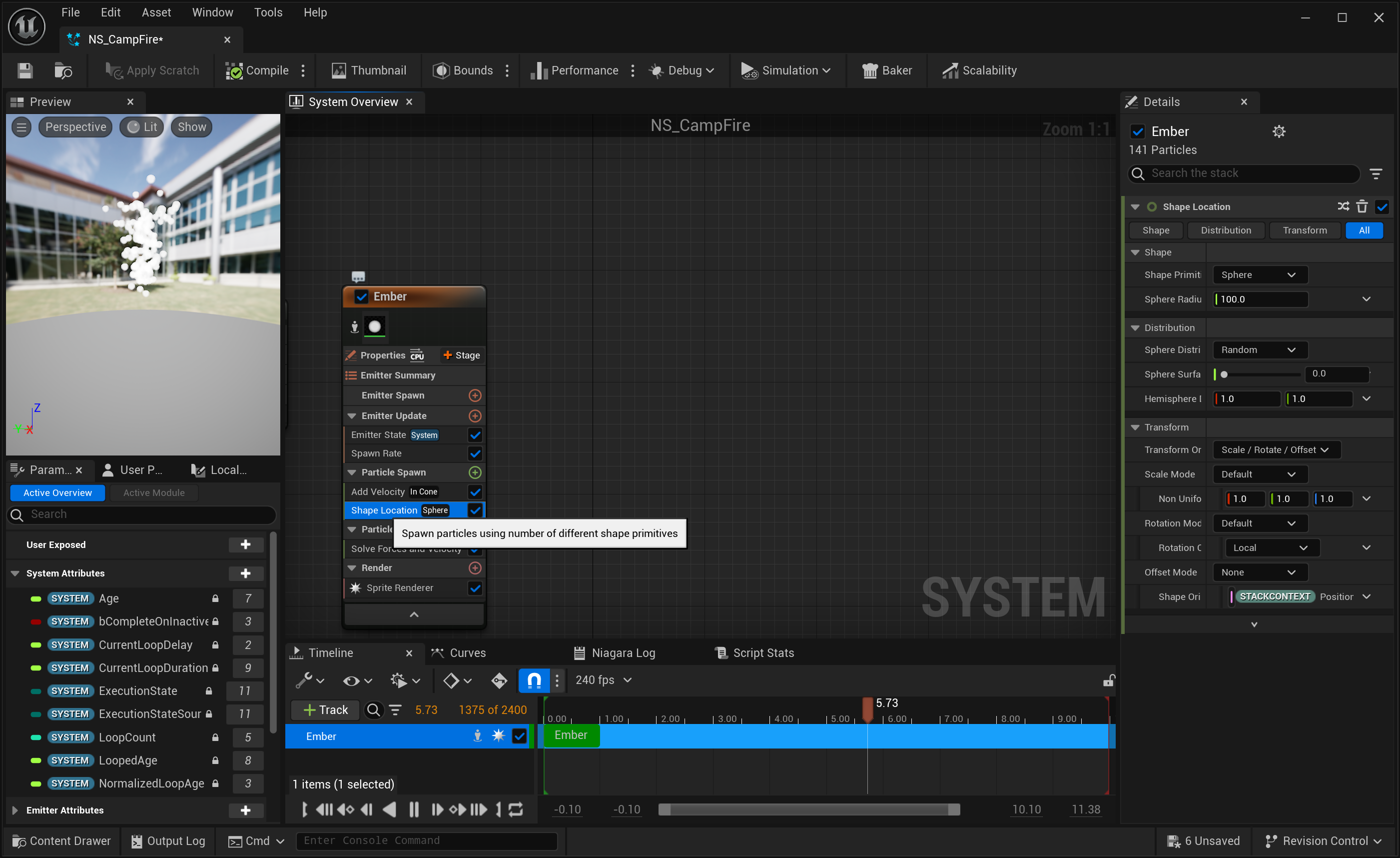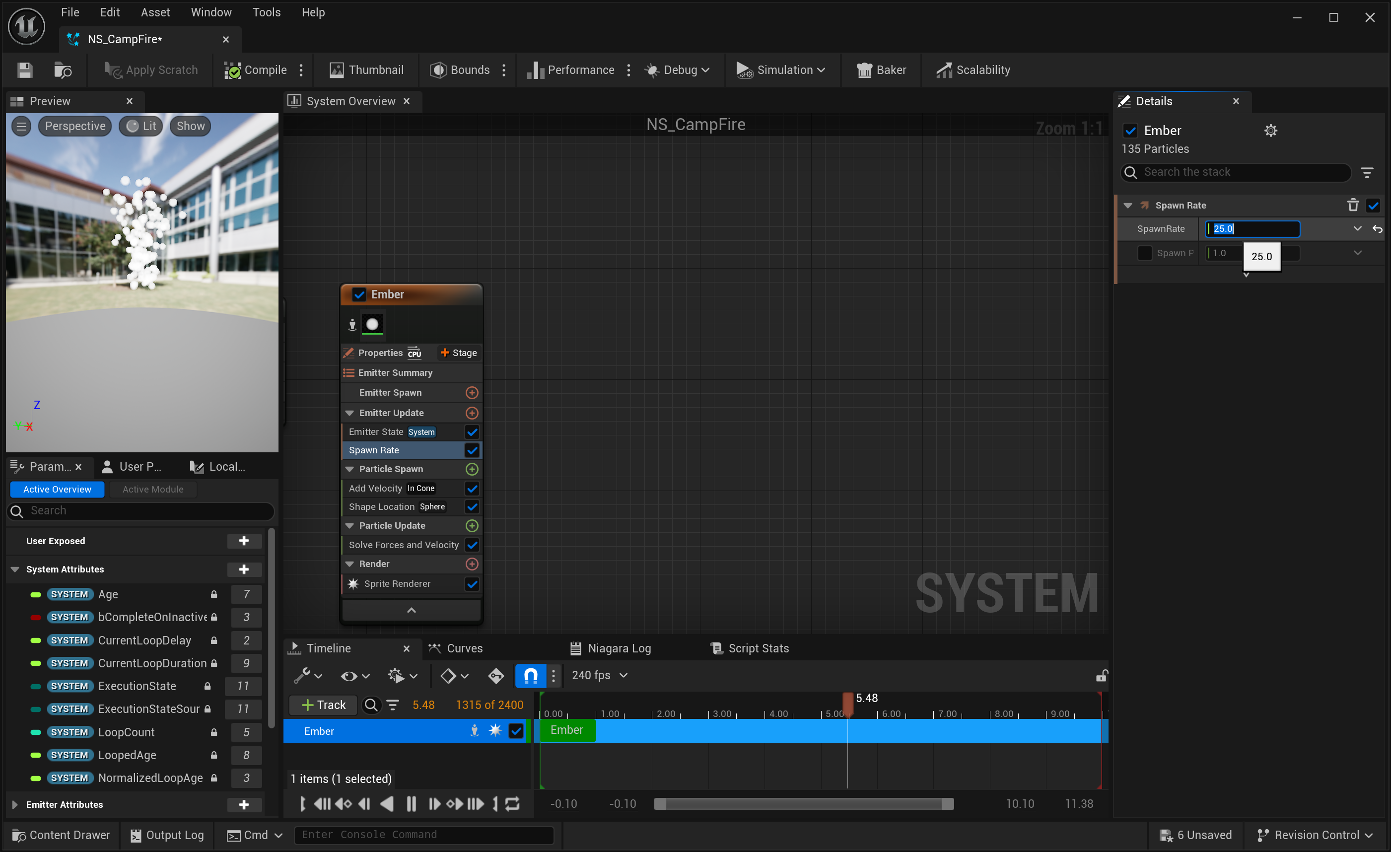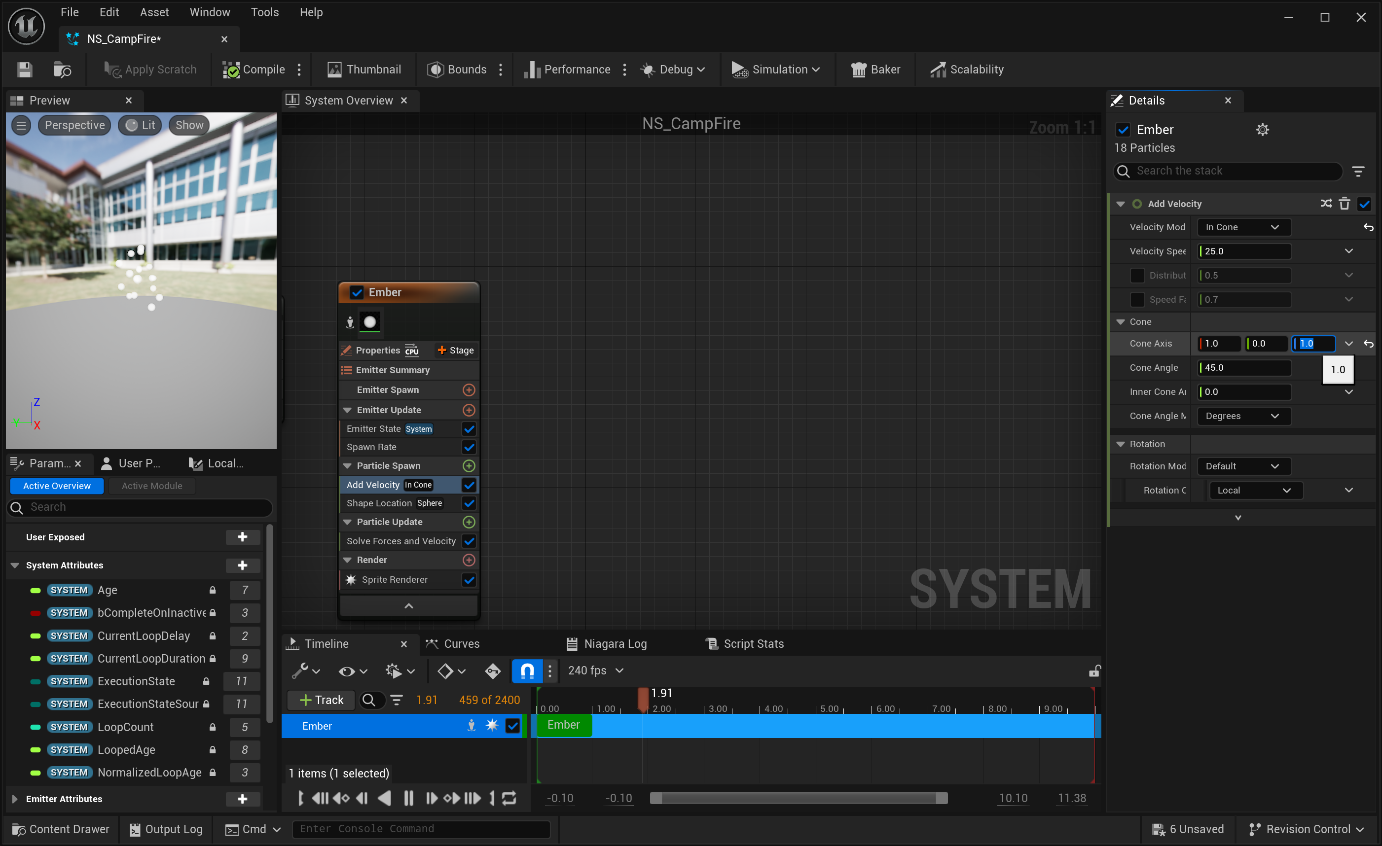 좀더 연기처럼 불꽃? 재?가 하늘위로 날아오르게하려면 Particle Update 아래에 Curl Noise Force 추가해주자