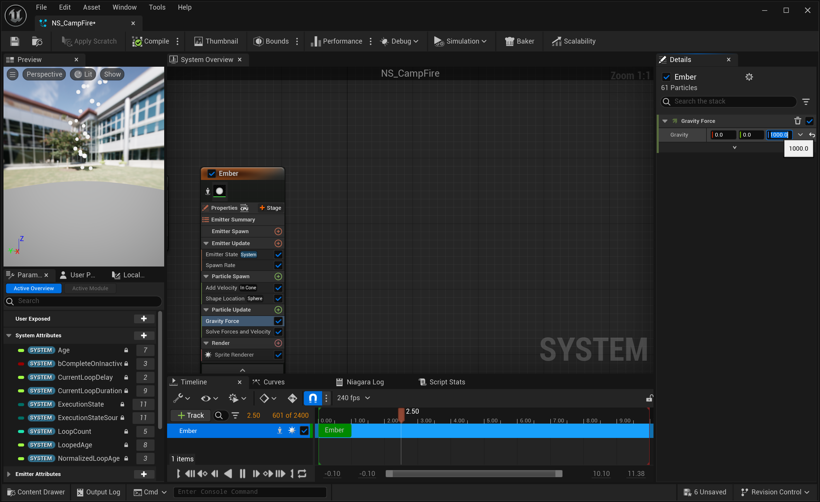 Particel Update> Gravity Force 추가 중력에 관해서 컨트롤해줄것임 디폴트값이 z값이 -980으로되어있는데 이것은 지구의 중력 계산값이라고함