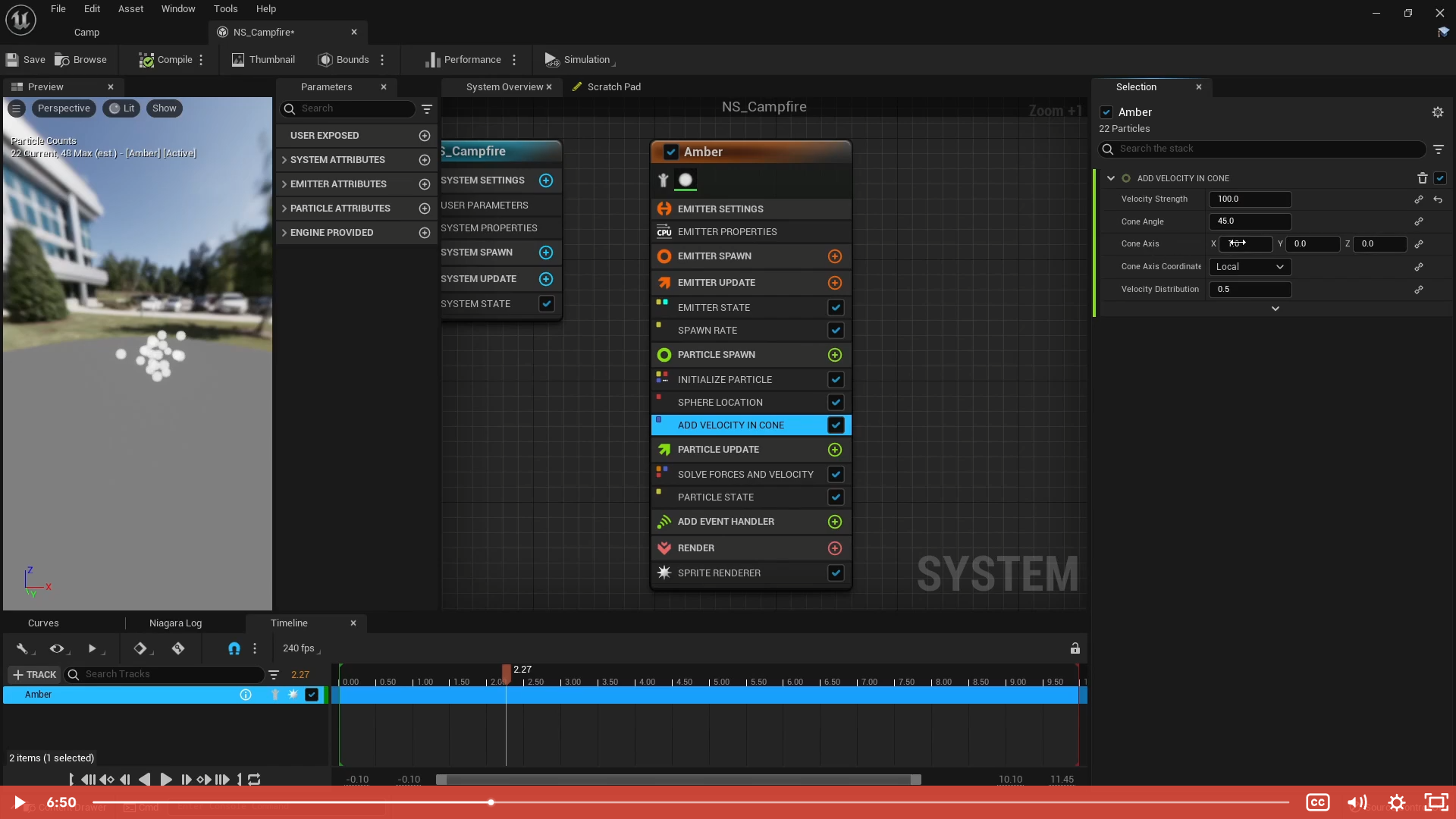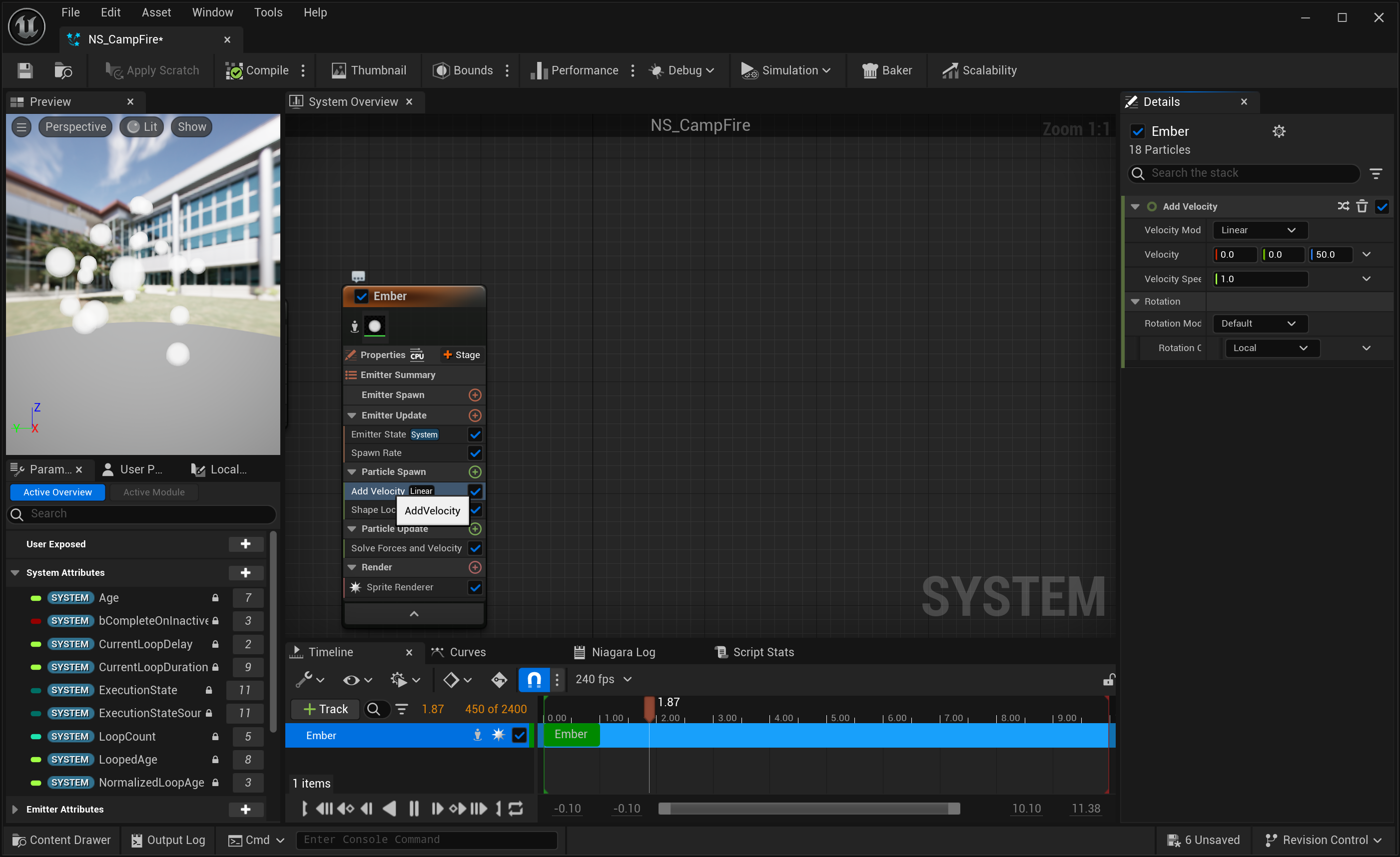 Particle Spawn > Add Velocity 추가 > 우측 디테일패널에서 Velocity Z값을 100으로 변경해줌