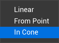 여기 디테일 패널에서 Velocity Mod가 Linear가 기본값으로 되어있는데 In Cone으로 바꿔보자