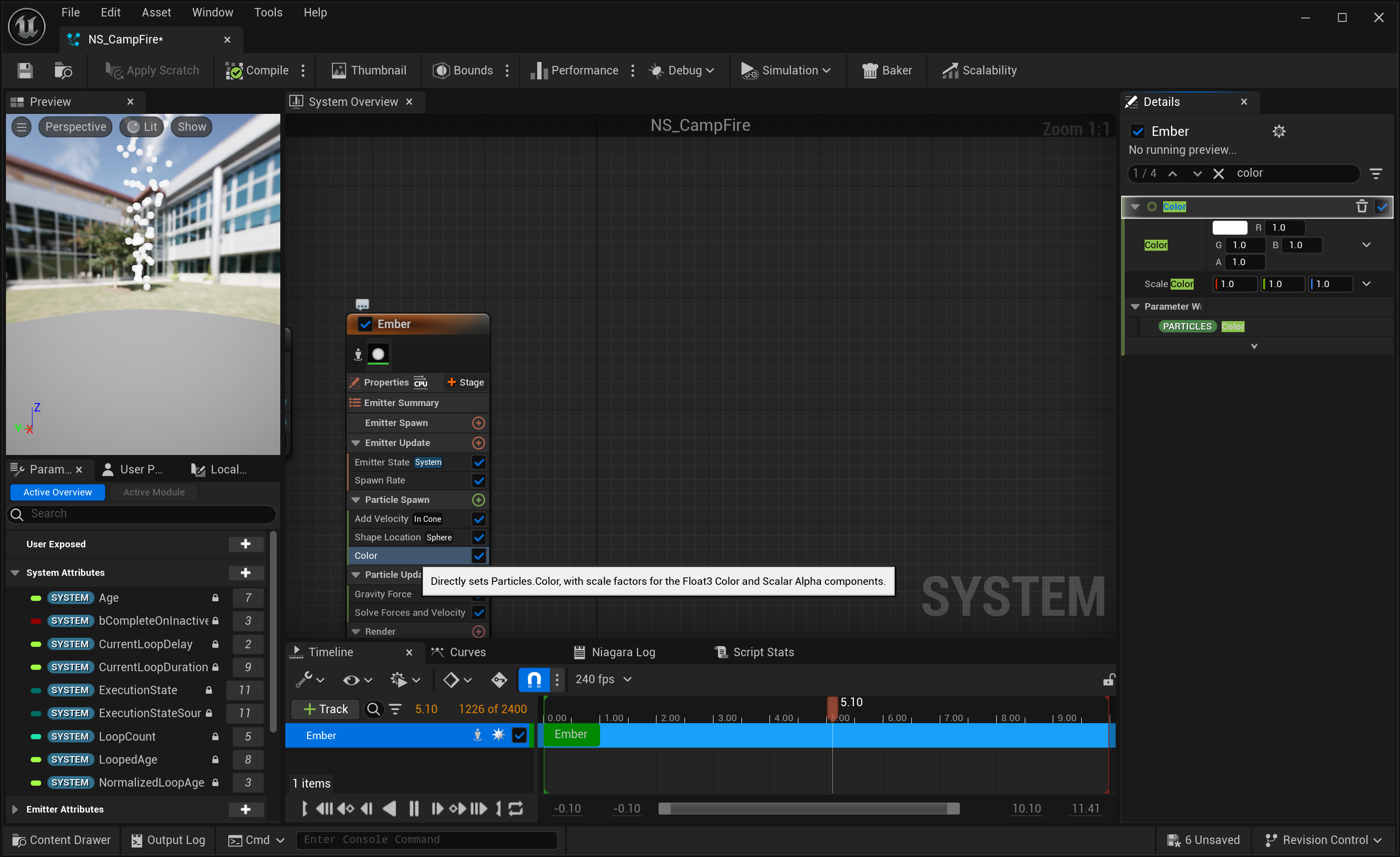 컬러모드를 변경하려면 Particle Spawn > Color 추가해주고 변경하면된다 근데! ue5.3에서 나이아가라시스템이 넘 많이바뀌어서