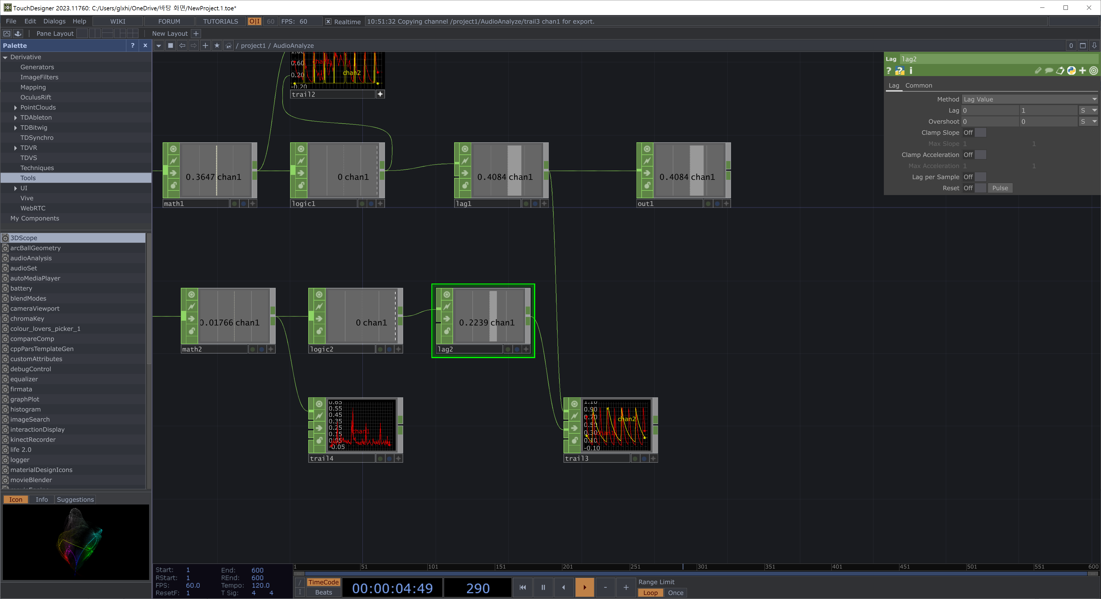 오디오 시각화에서 Lag노드는 필수임
