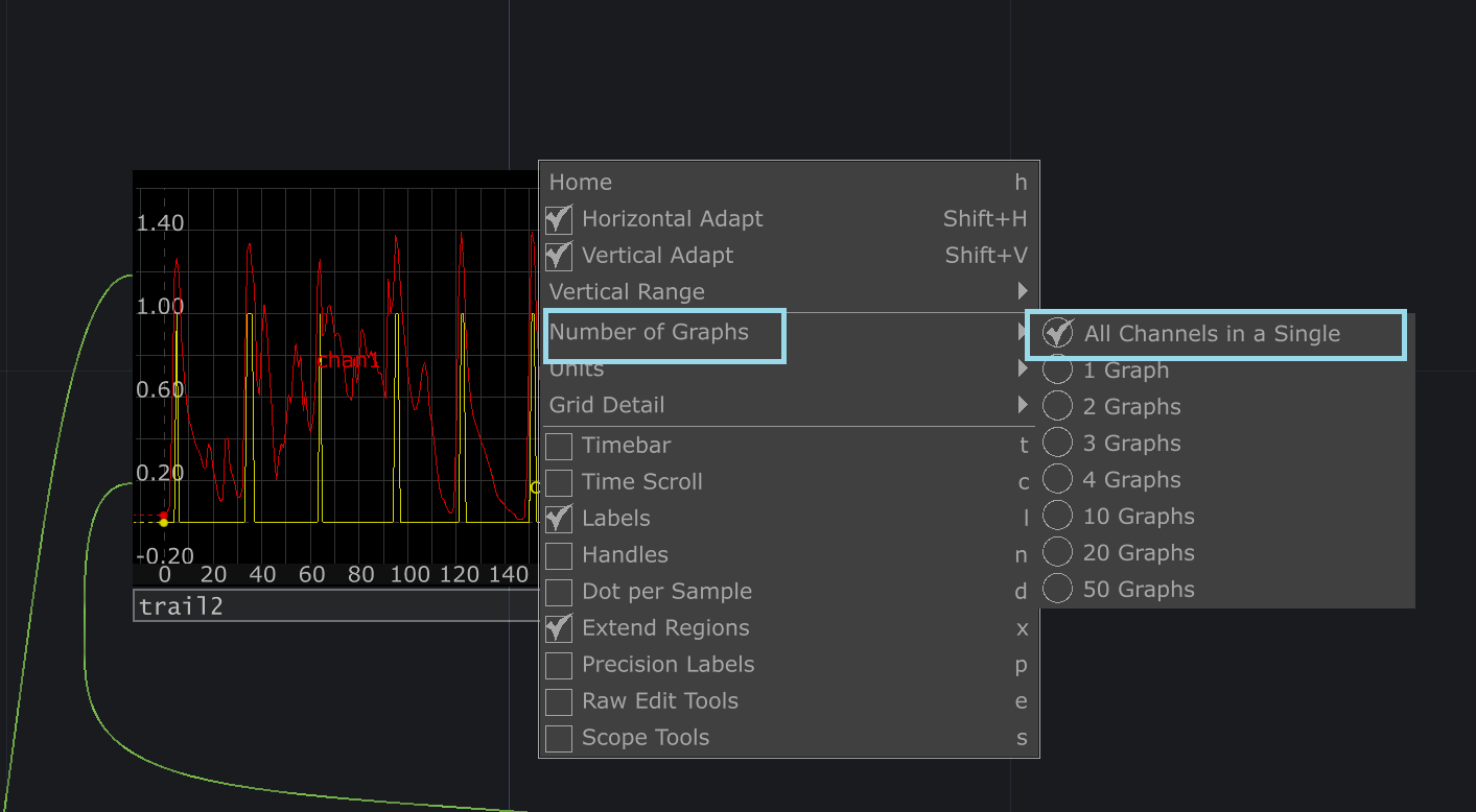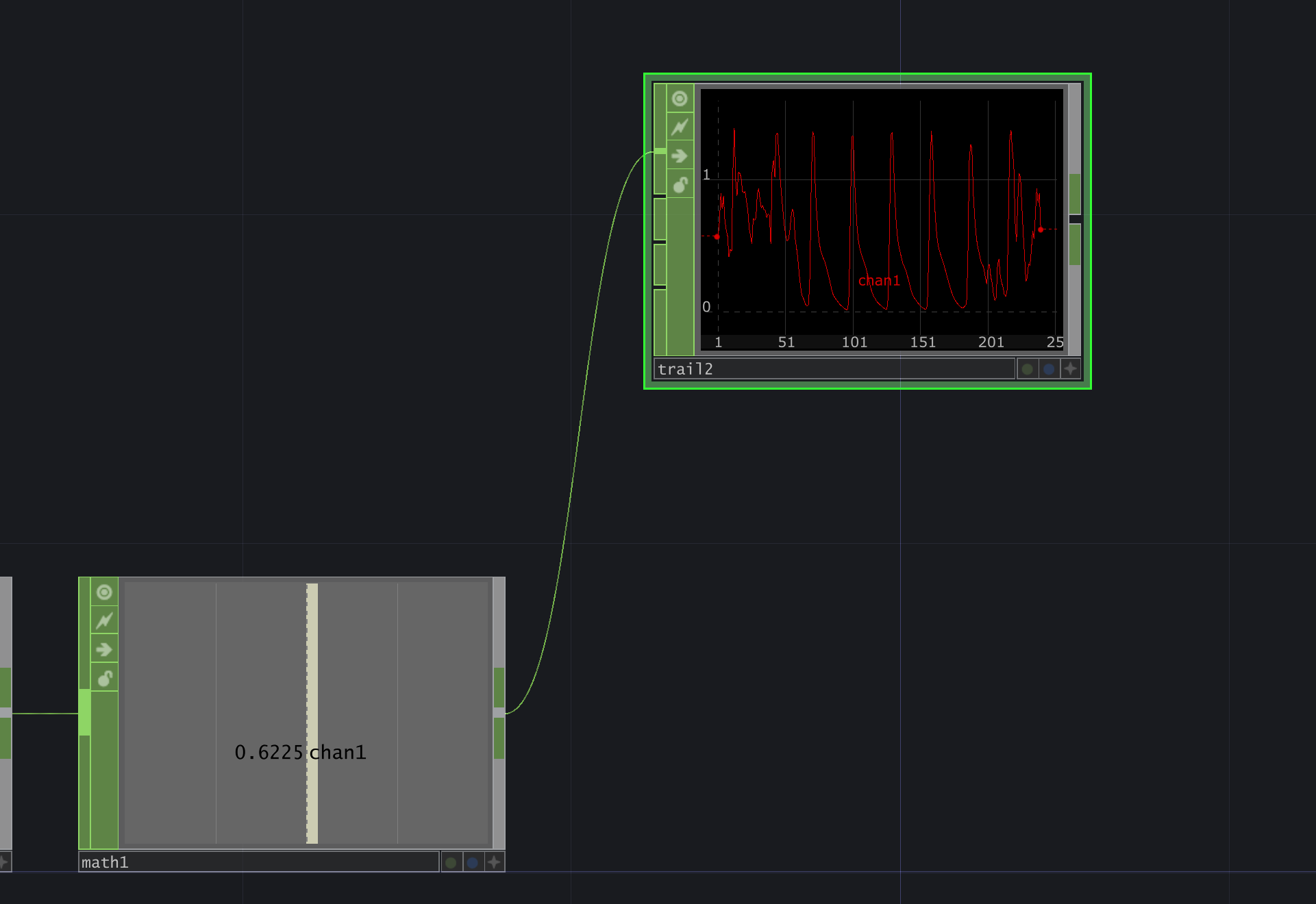 lag만 살짝 다르게 0,1을 줬는데 이유는 너무 자주 깜빡거렸기때문에 딜레이를 좀 준것 너무 날뛰지않게 그리고 trail 노드에서 그래프 하나로 보기로 해서 한눈에 확인함