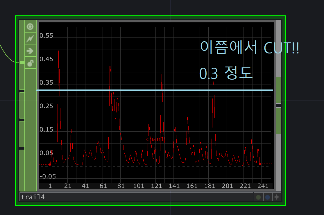 가장 큰 신호부분만 받아서 입력되게하자 0.3~1정도가 적당할듯