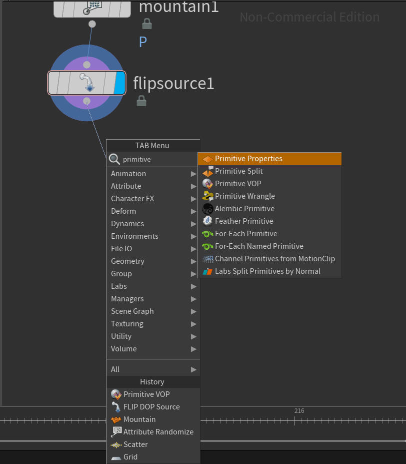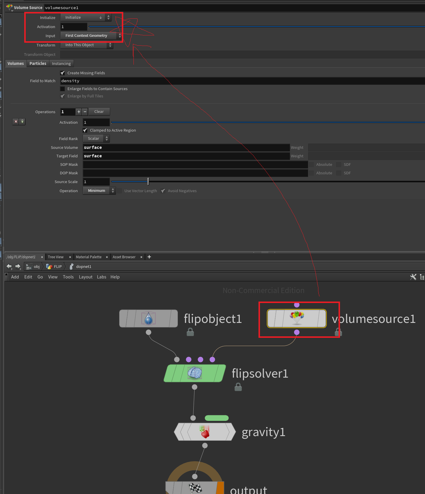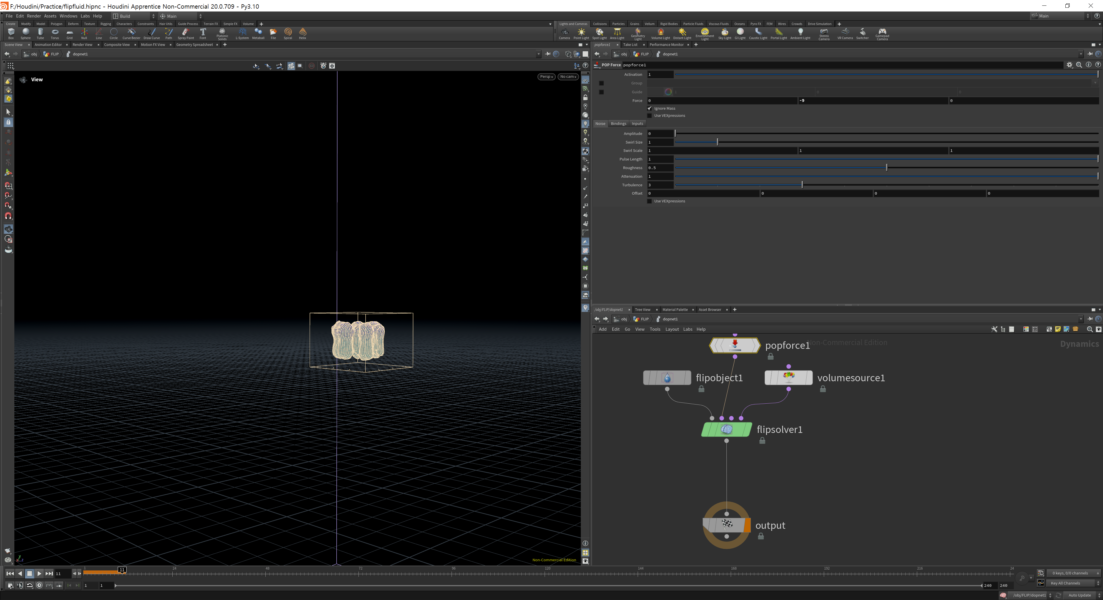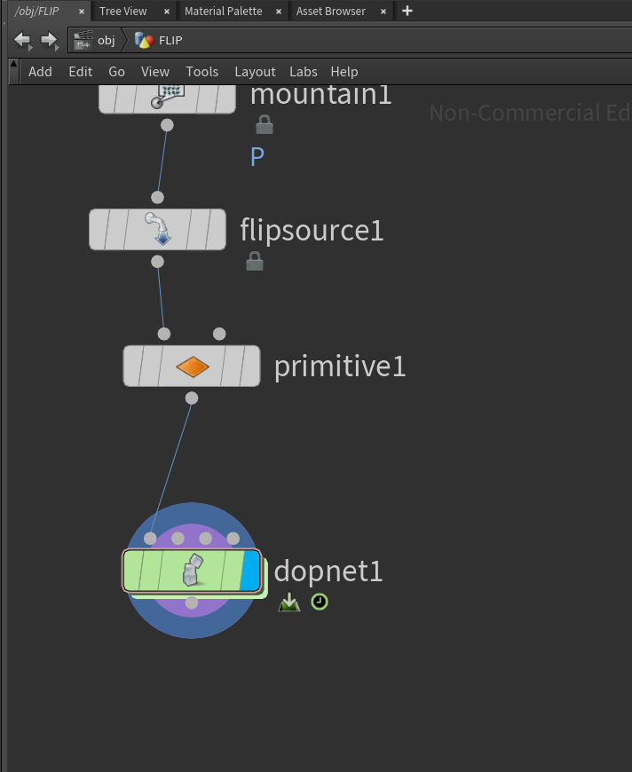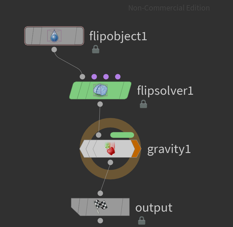 이렇게 flip object> flip solver> gravity > output 노드가들어가도록만들어줌