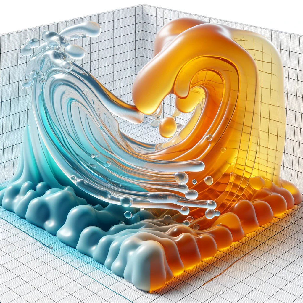물과 꿀이 섞인 장면을 시뮬레이션 하고싶다면 물 버텍스들의 점도는 낮게, 꿀 버텍스들의 점도는 높게