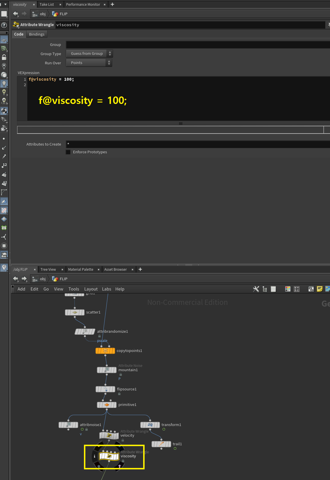 후디니에서 점도를 조절하는것은 유체 시뮬레이션에서 매우 중요한 역할을 한다