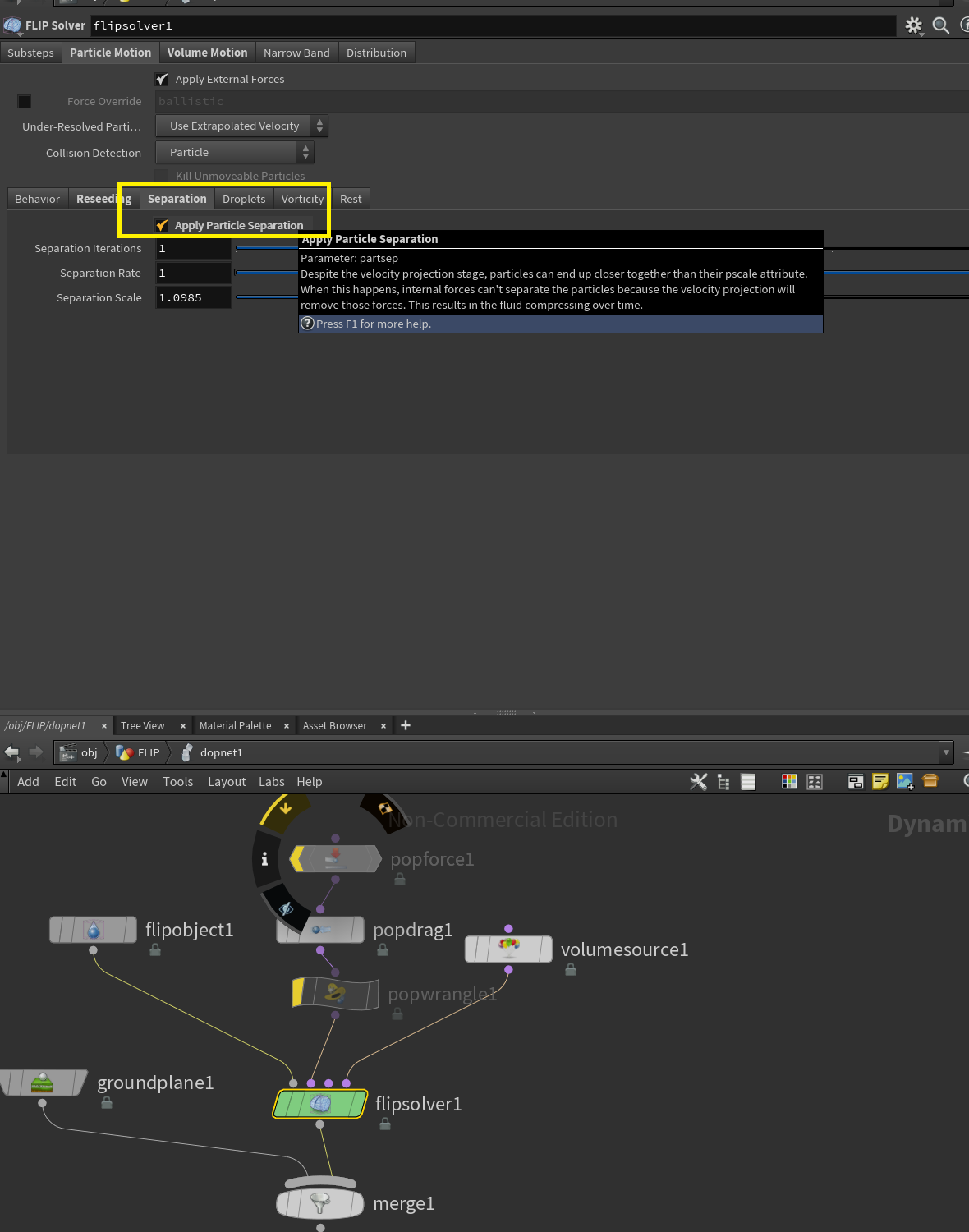 대규모의 유체 시뮬레이션(바다, 홍수, 파도 등)에서 높은 particle separation값을 줘서 속도를 높이자.