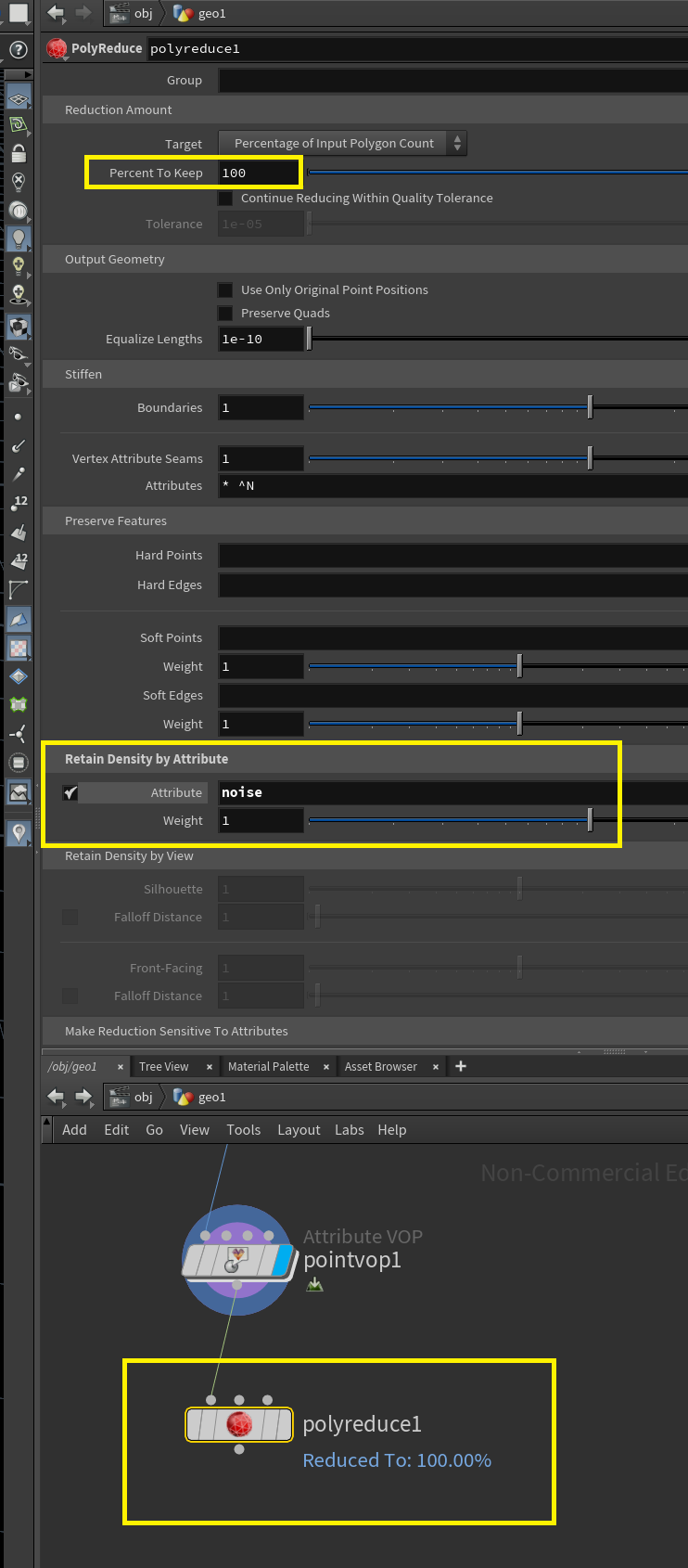 폴리곤 수를 아까 만든 noise 속성에 맞춰 줄이거나 늘려줄수있음.