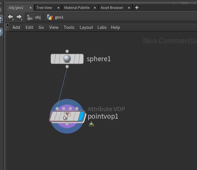 - Point VOP 노드를 기존 지오메트리 노드에 연결합니다.