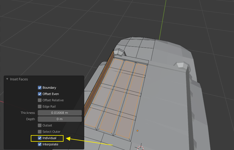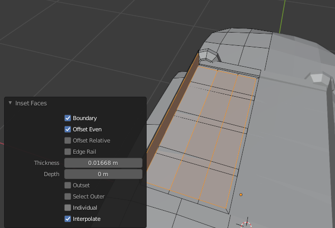 Inset face 기능을 사용한 뒤 뜨는 오퍼레이션 패널