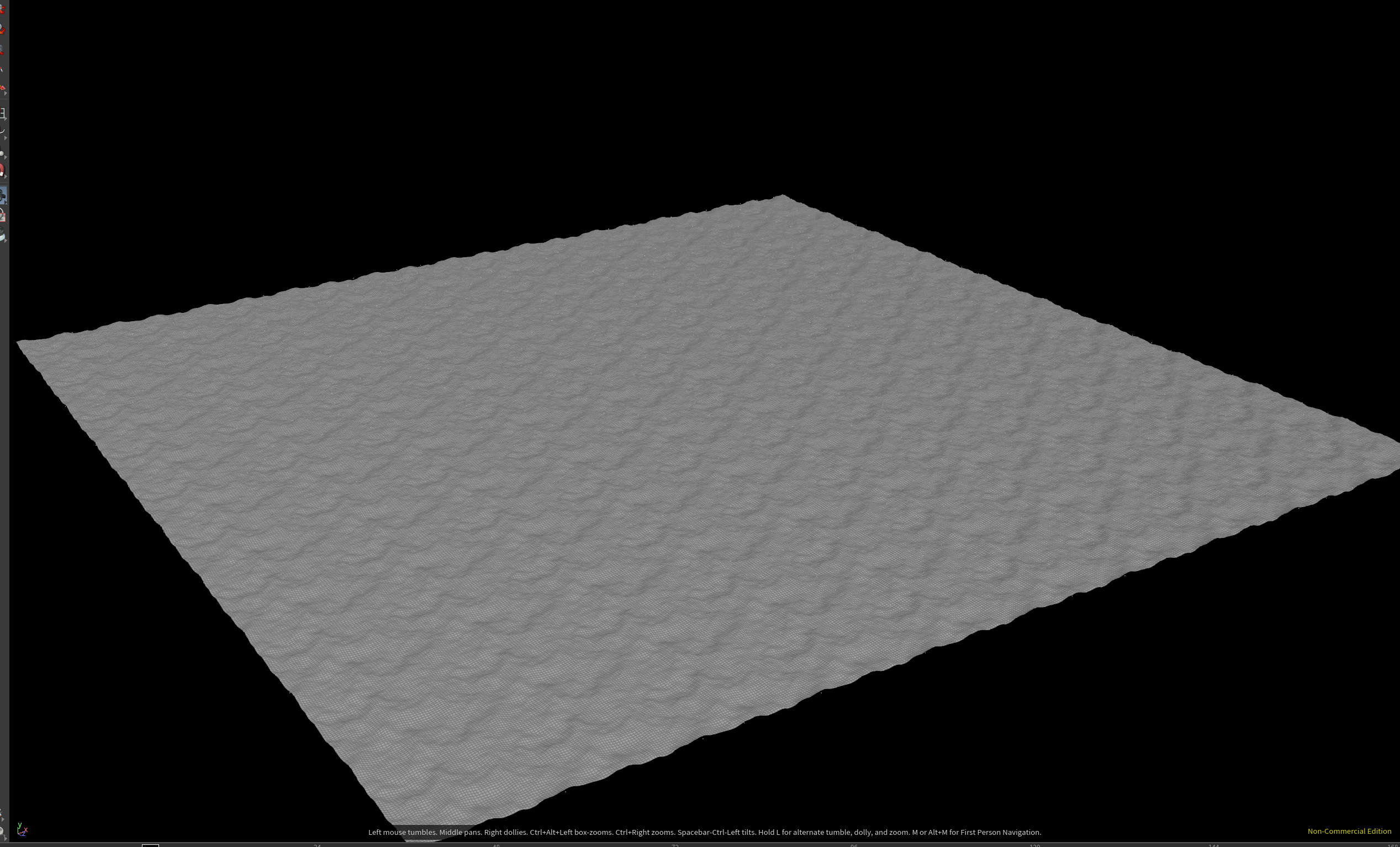 scatter노드 연결 안했을때 (tiling이 매우티가남) 후디니에서 바다를 만들 때 Ocean Spectrum 노드와 Ocean Evaluate 노드를 사용하는 것은 흔한 작업입니다. 이 과정에서 Grid 노드와 Ocean Spectrum 노드 사이에 Scatter 노드를 사용하는 경우가 있는데, 이는 주로 입자 기반 시뮬레이션 또는 세부적인 시각적 효과를 위한 추가적인 레이어를 생성할 때 유용합니다.