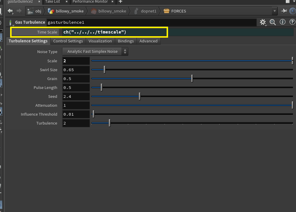 이 노드는 연기나 불의 디테일을 높이고 더욱 자연스러운 결과를 얻기 위해 사용된다