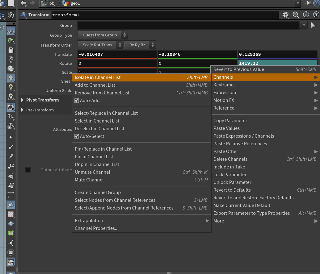 바꾸고싶은 축(z) 값에 우클릭> channels> Isolate in Channel List 클릭하면!