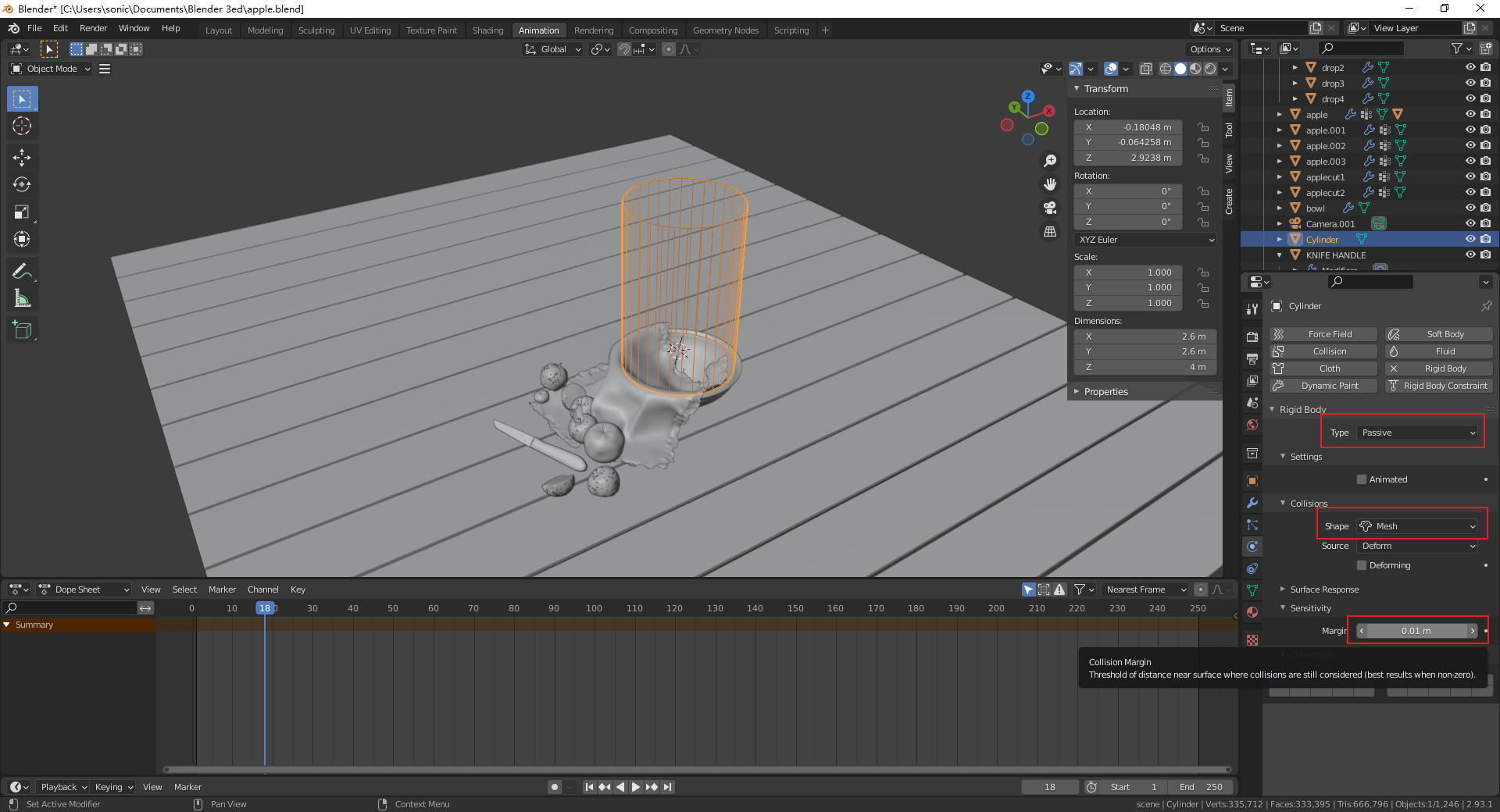 Collisions에서 Mesh 적용해주고,. Sensitivity Margin 0.01m로 변경