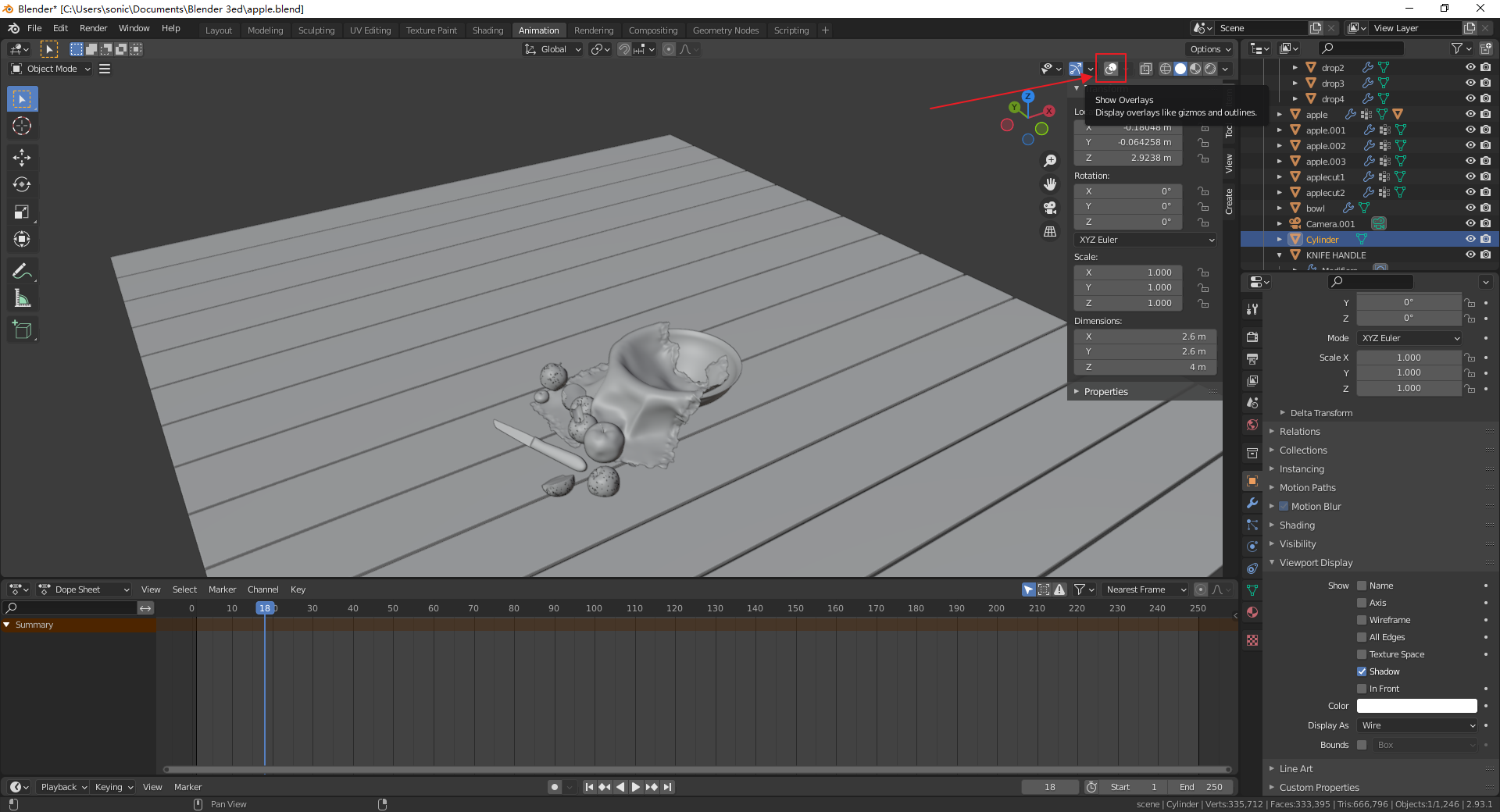 그다음 사과 하나를 선택 후 Alt+D 해서 복사해줌 ( 이렇게하면 속성까지 같이 복사된다고하는거같음?)