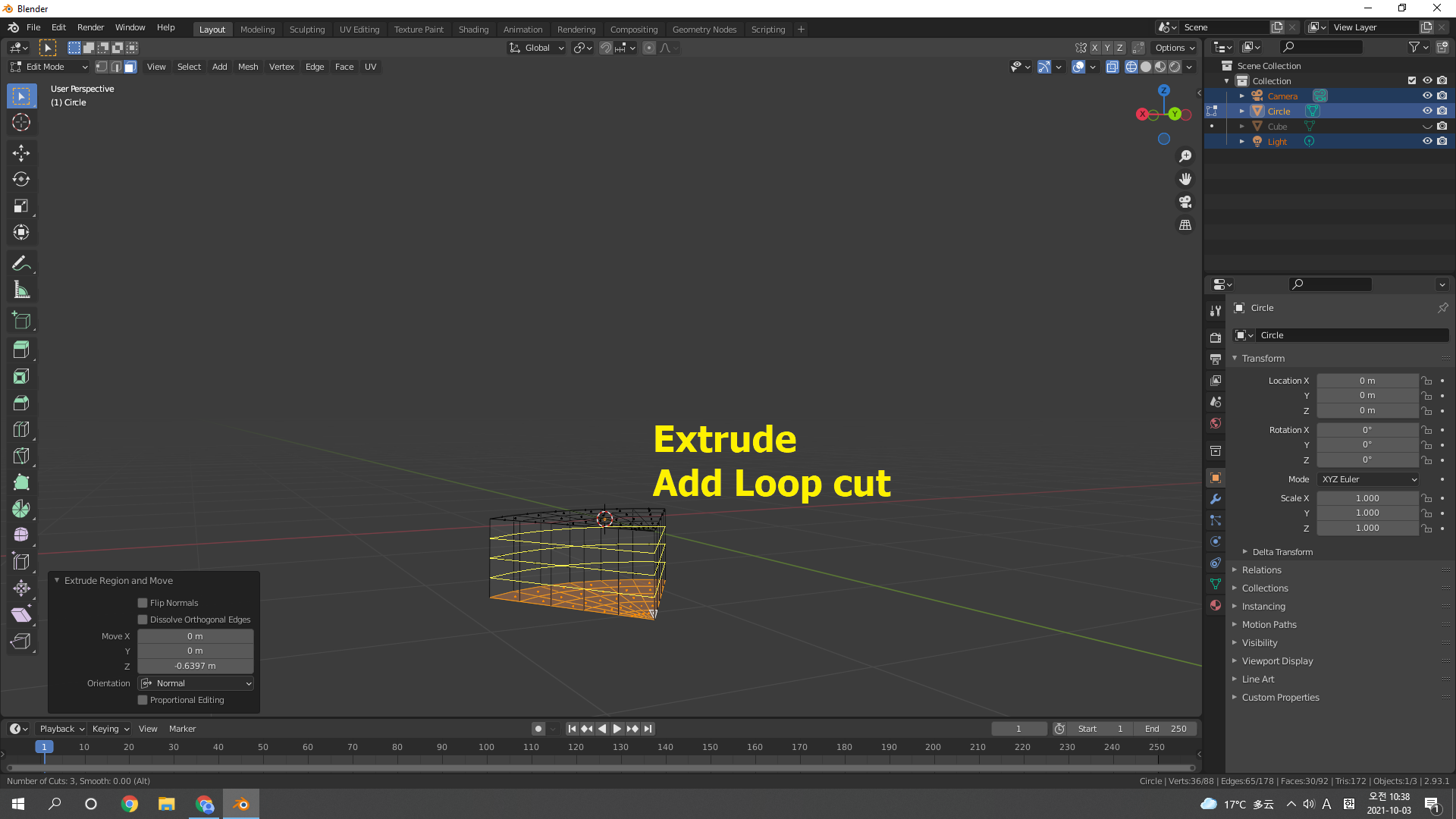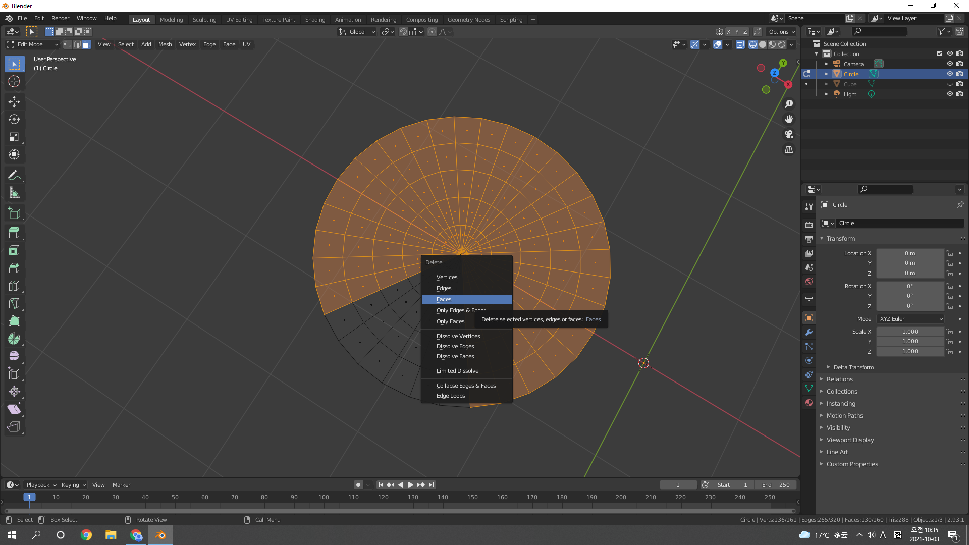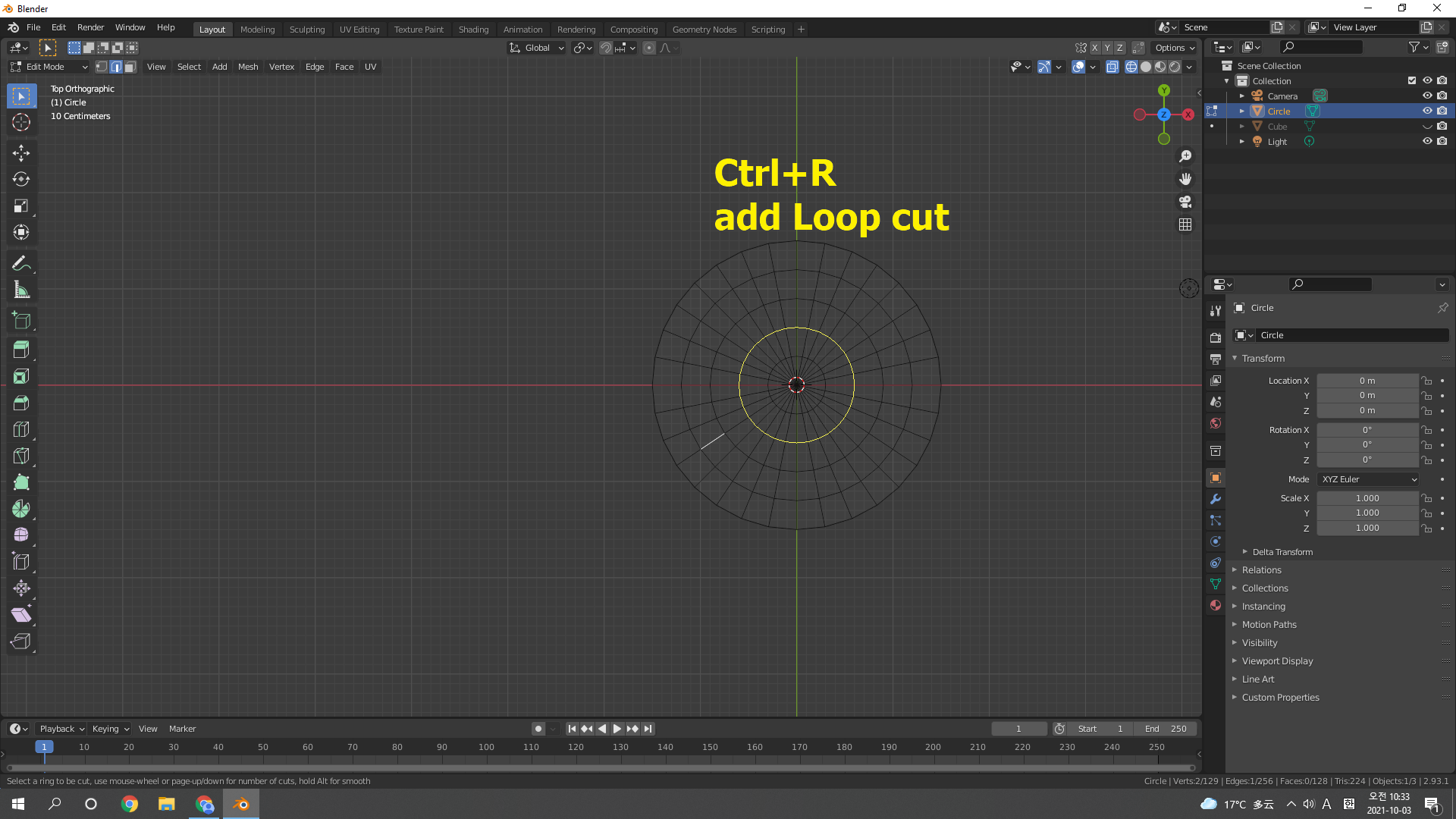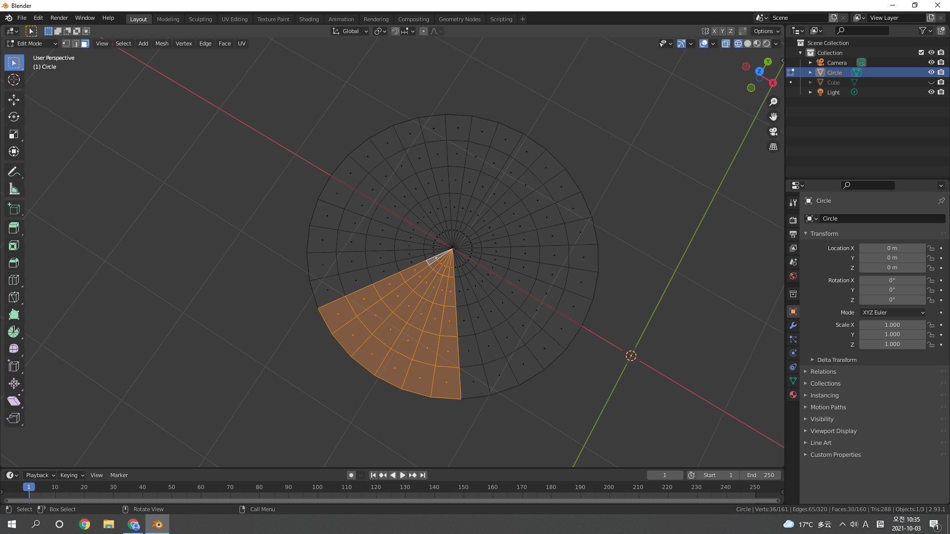 Add mesh로 Circle 추가