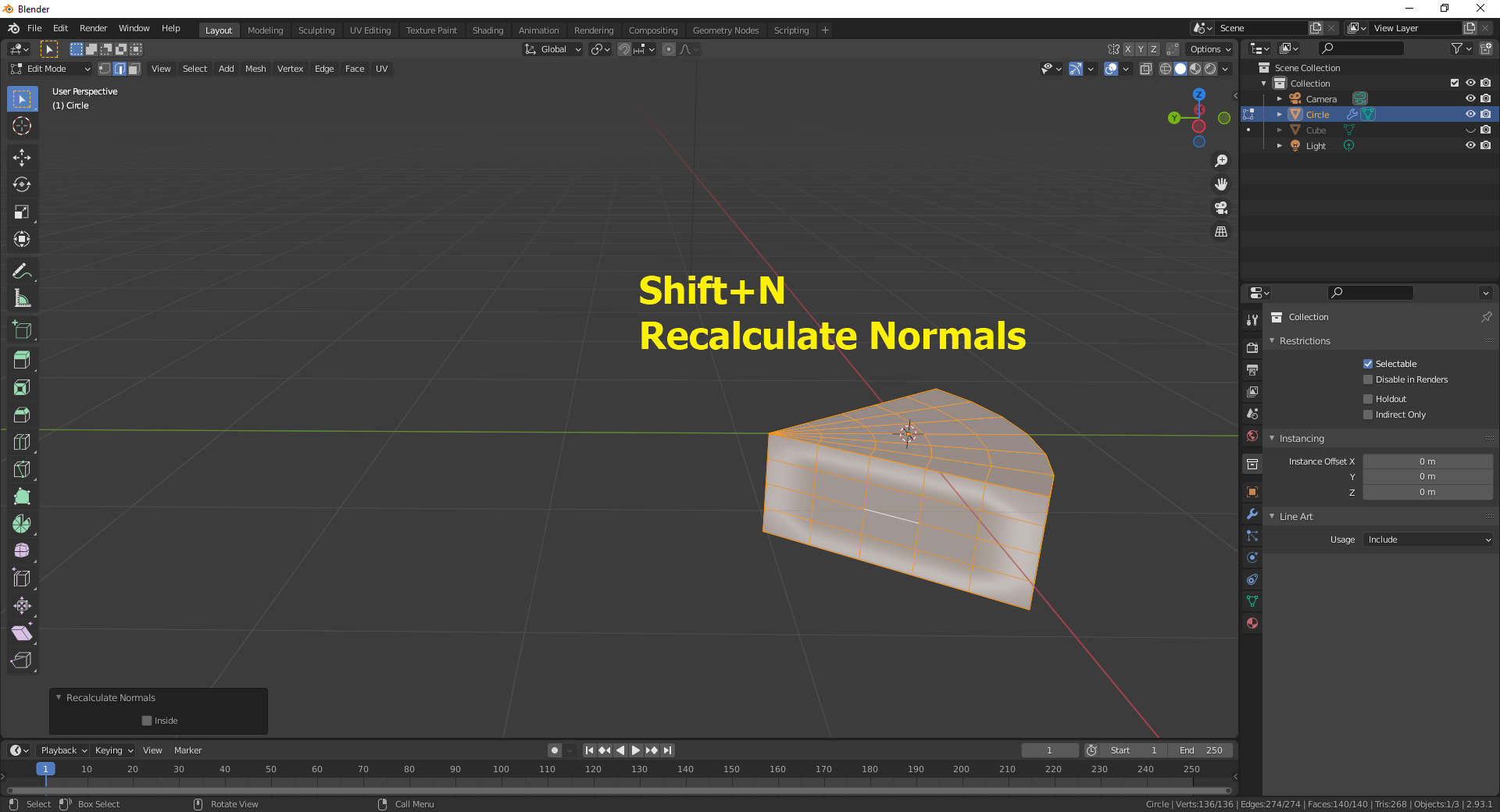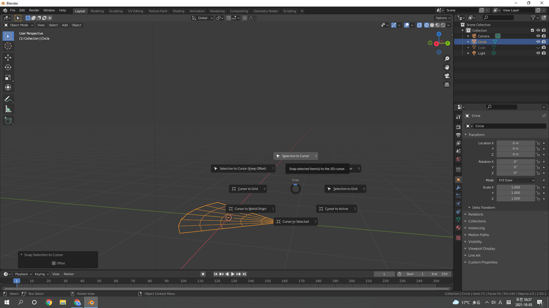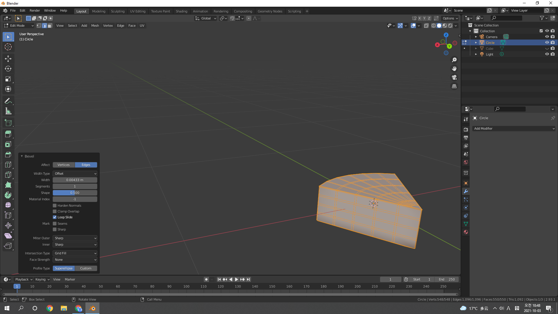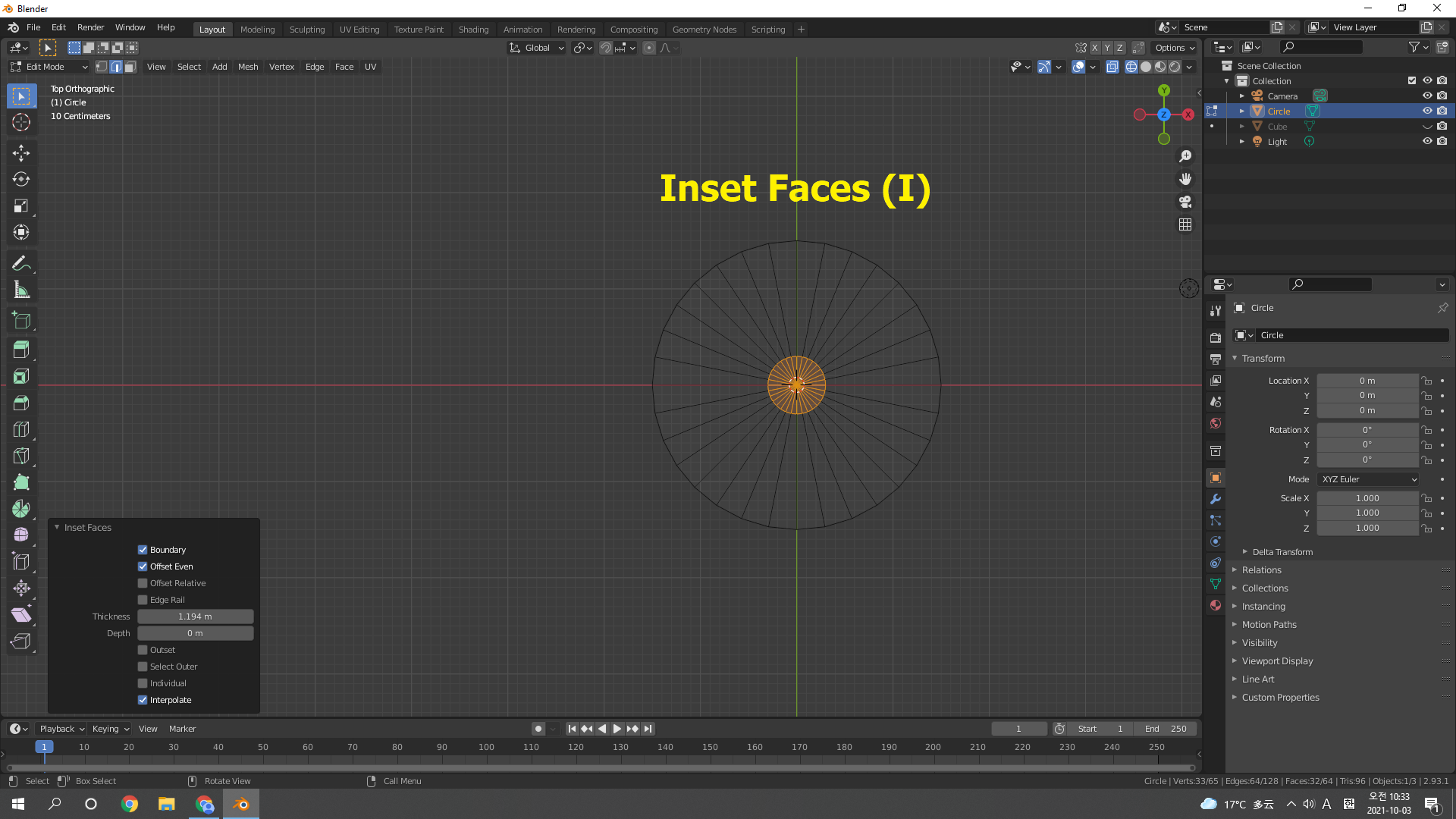 Add mesh로 Circle 추가