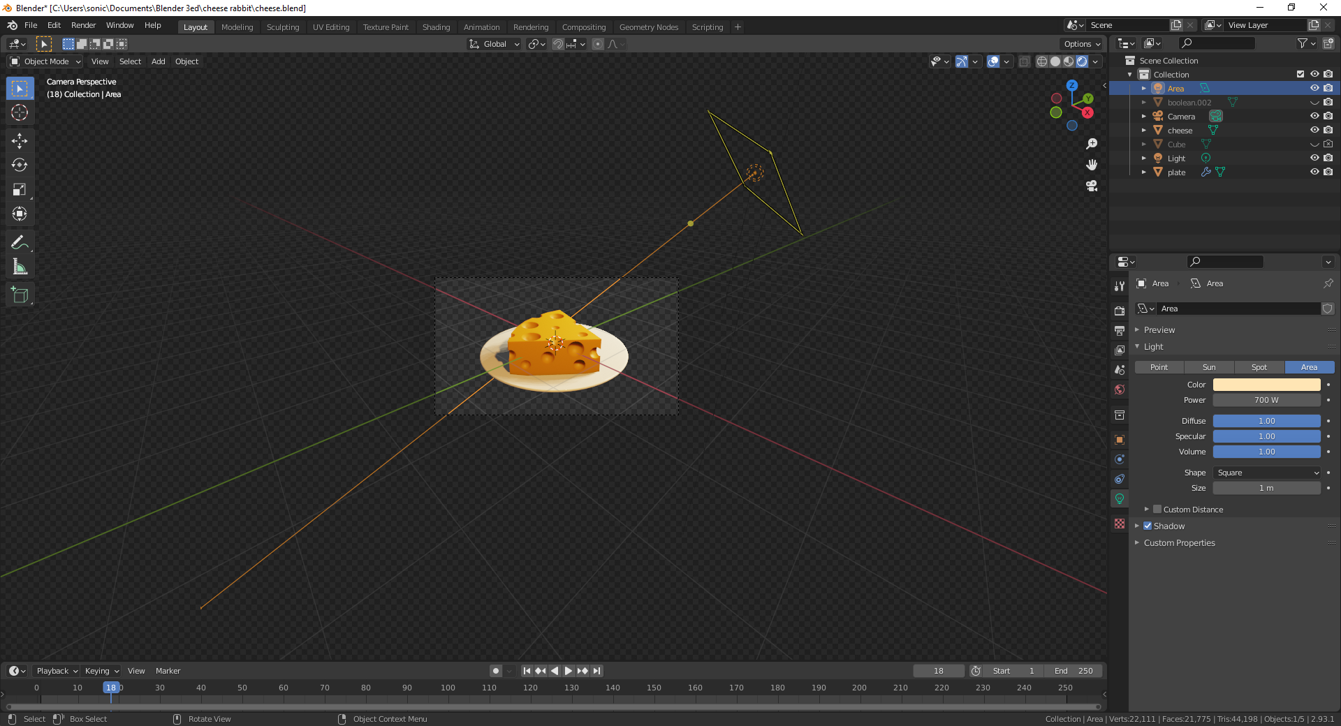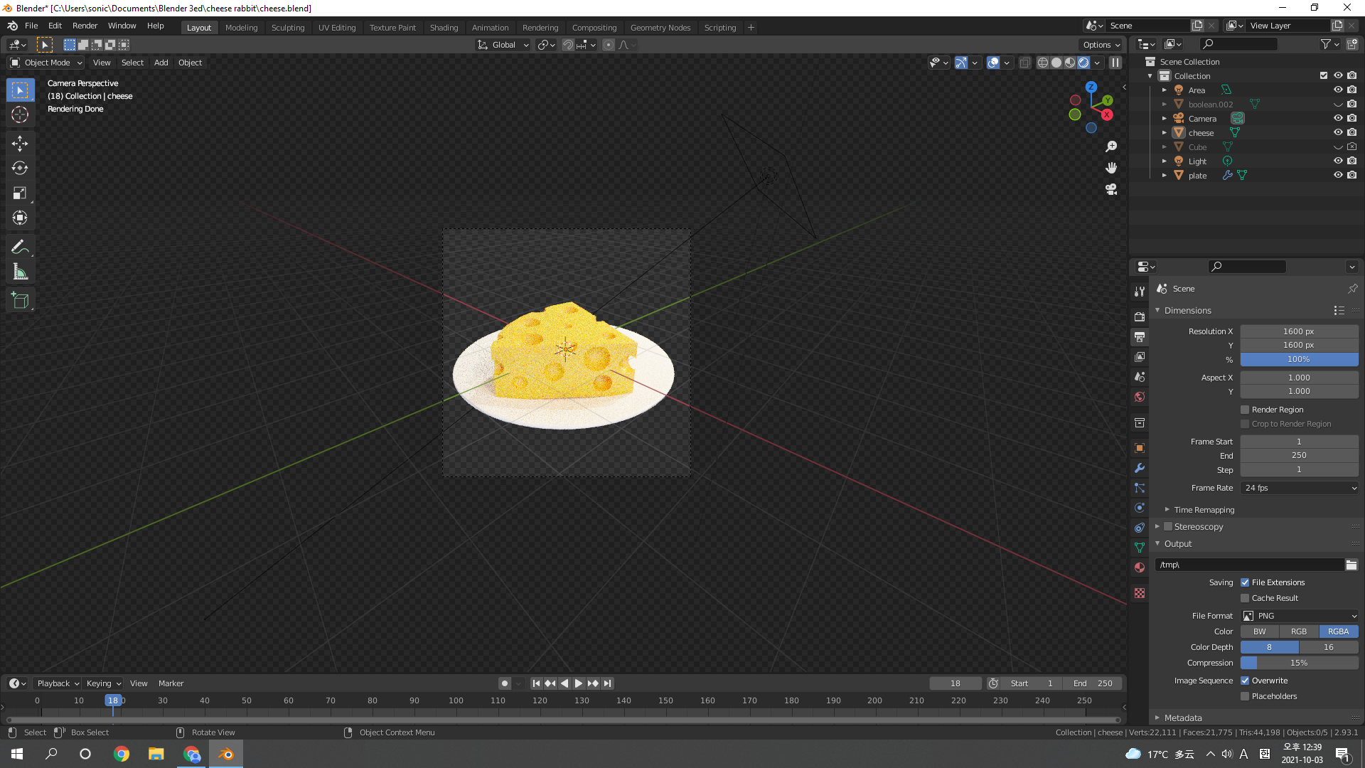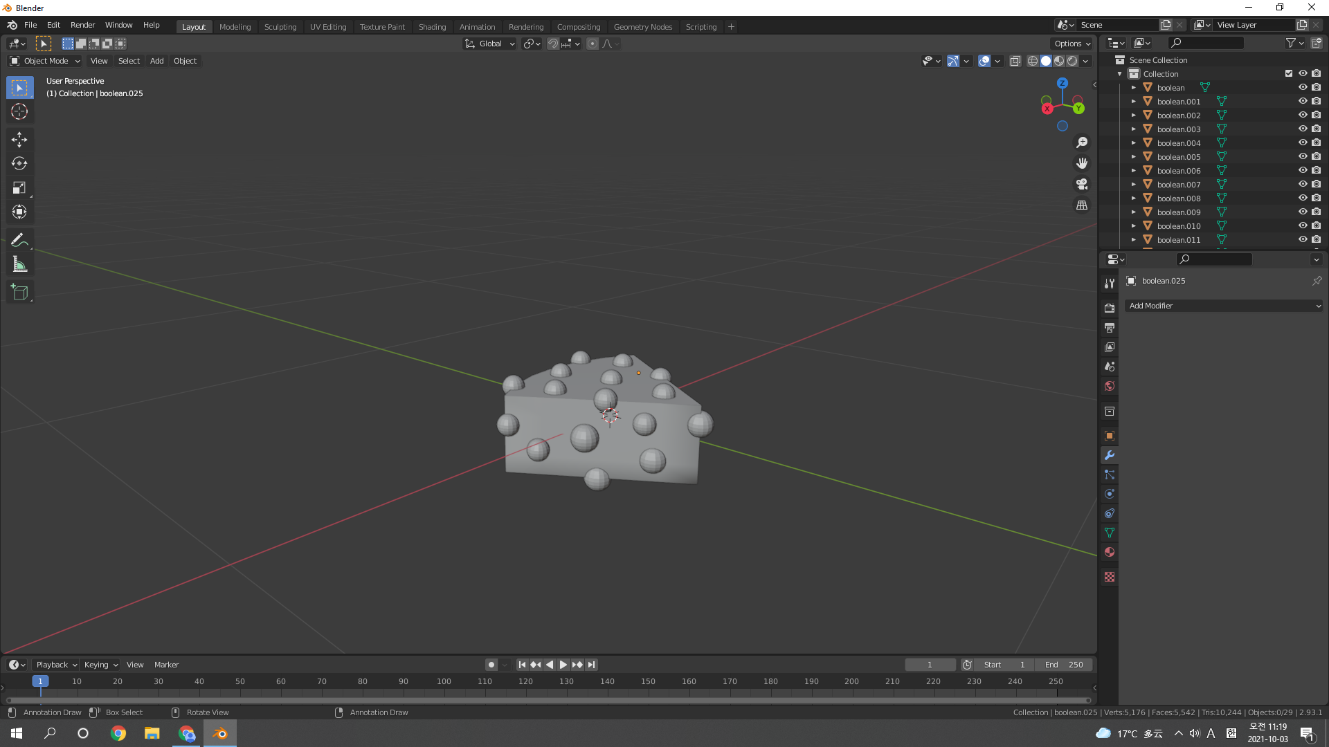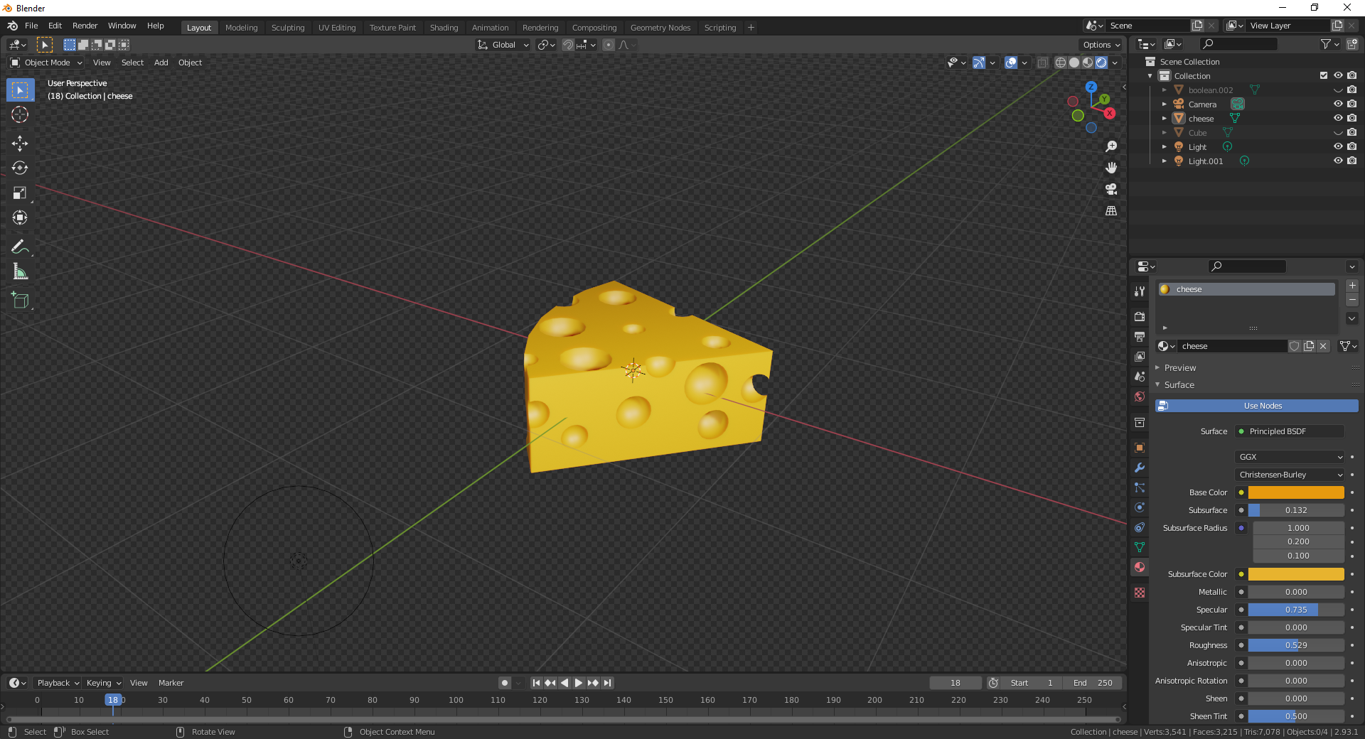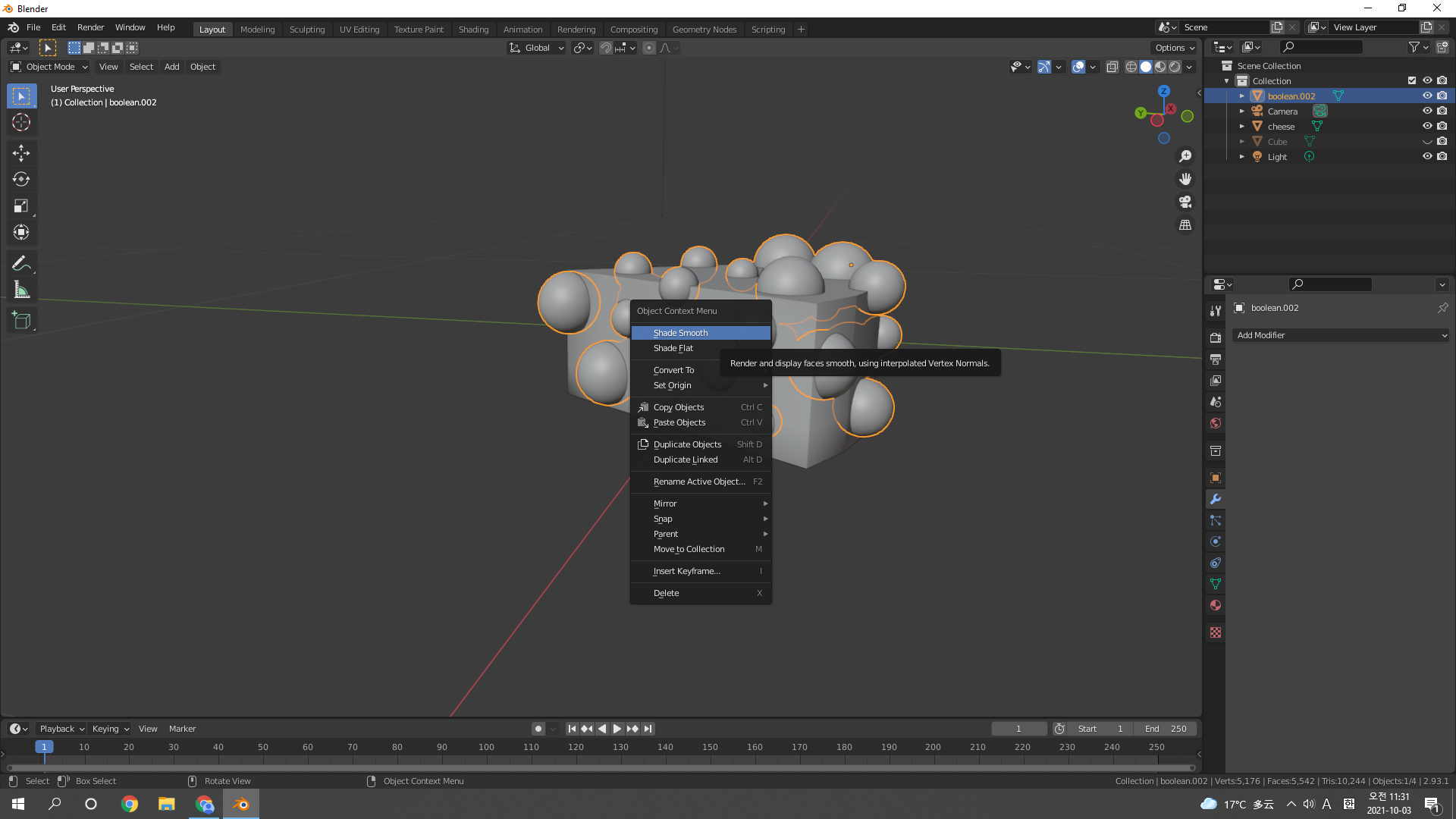 치즈 몸통 선택 후 Boolean modifier 추가추가추. 적용